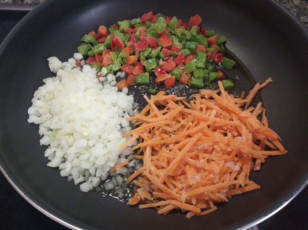 Salteamos las verduras troceadas (puede ser congelada) en un poco de aceite.
