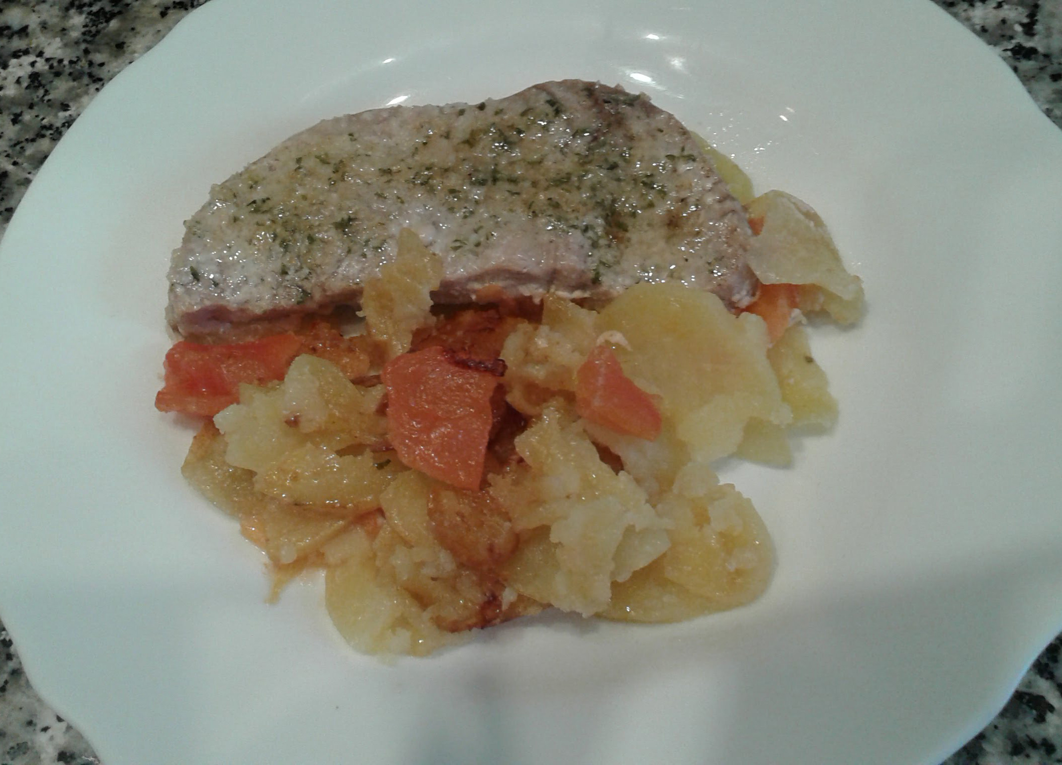 Hornear con un poco de agua, 1 cm más ó menos, a 200 º durante 40 minutos.