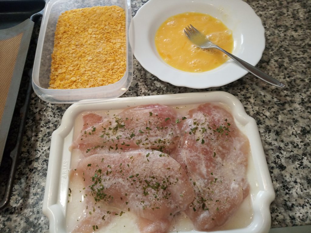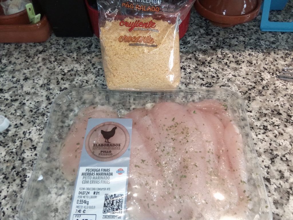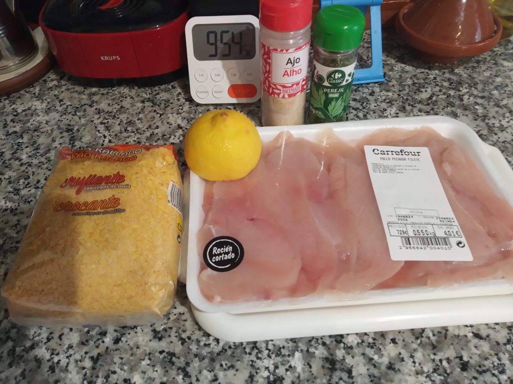 Con tiempo, macerar los filetes de pollos, con un poco de sal, ajo, perejil y zumo de limón, reservar tapado, hasta la hora de hacerlo.