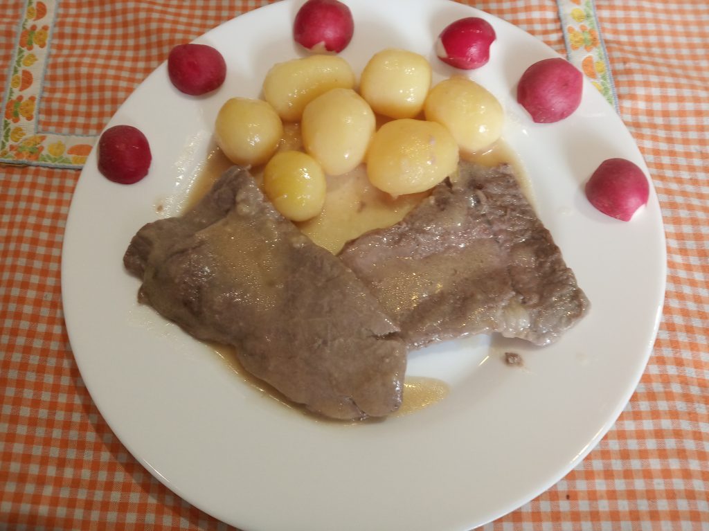 Servir inmediatamente, dos filetes por personas con su salsita, y pan para mojar.