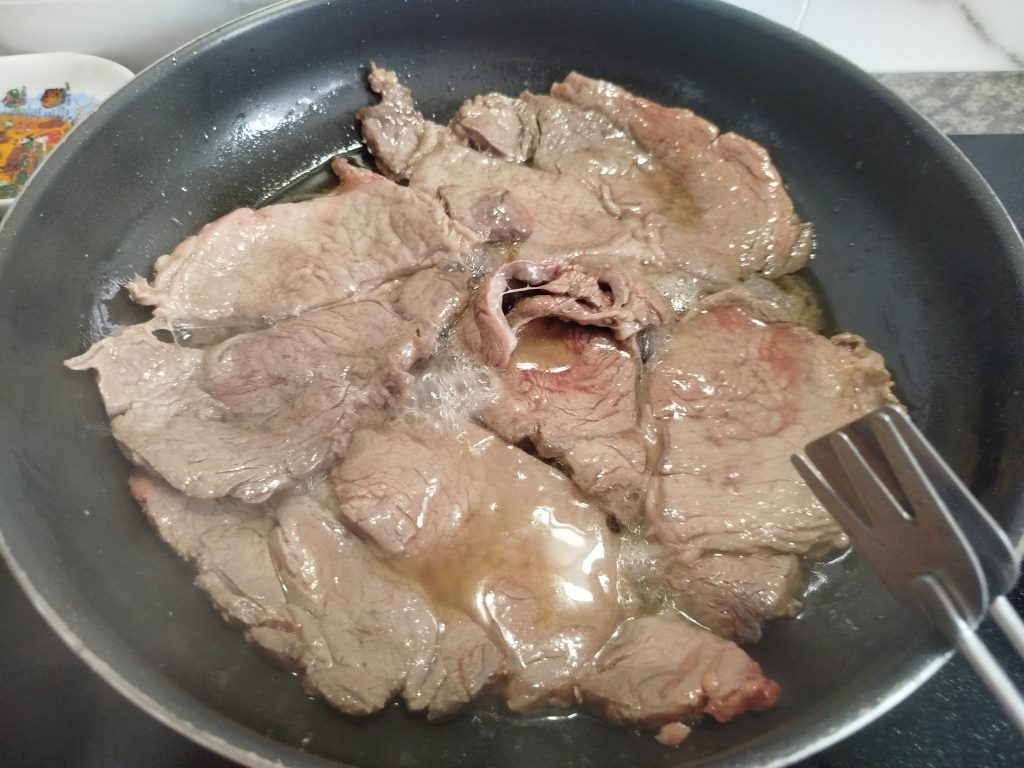 En una sartén amplia echar el aceite de oliva, y refreír los filetes, poco a poco, sacándolo a un plato. Cuando este la última tanda, añadir el resto de los filetes a la sartén.