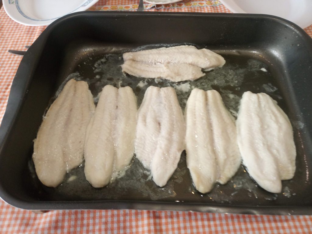 También pueden utilizar otros filetes de pescados, como merluza, dorada, lubina, pez espada, lenguados enteros sin pellejo ni cabeza, eglefino, rosada, ojo esta ultima suelta mucha agua.