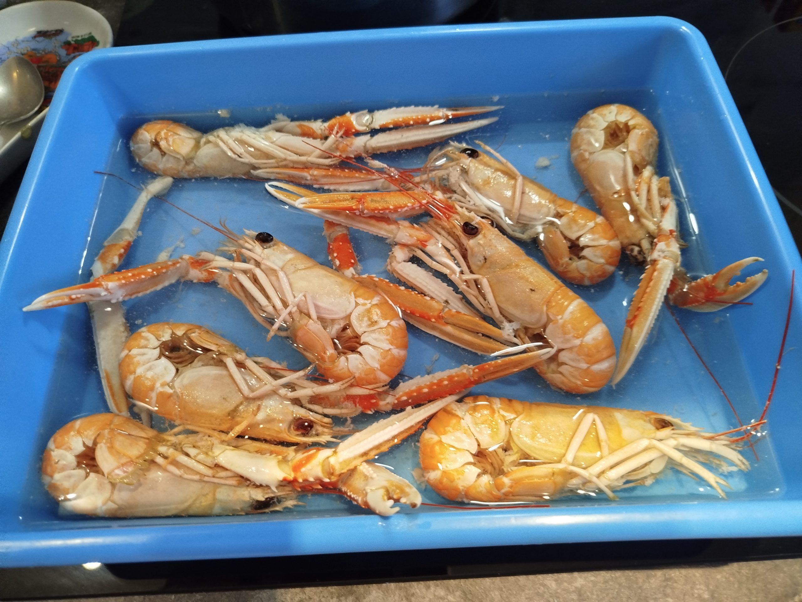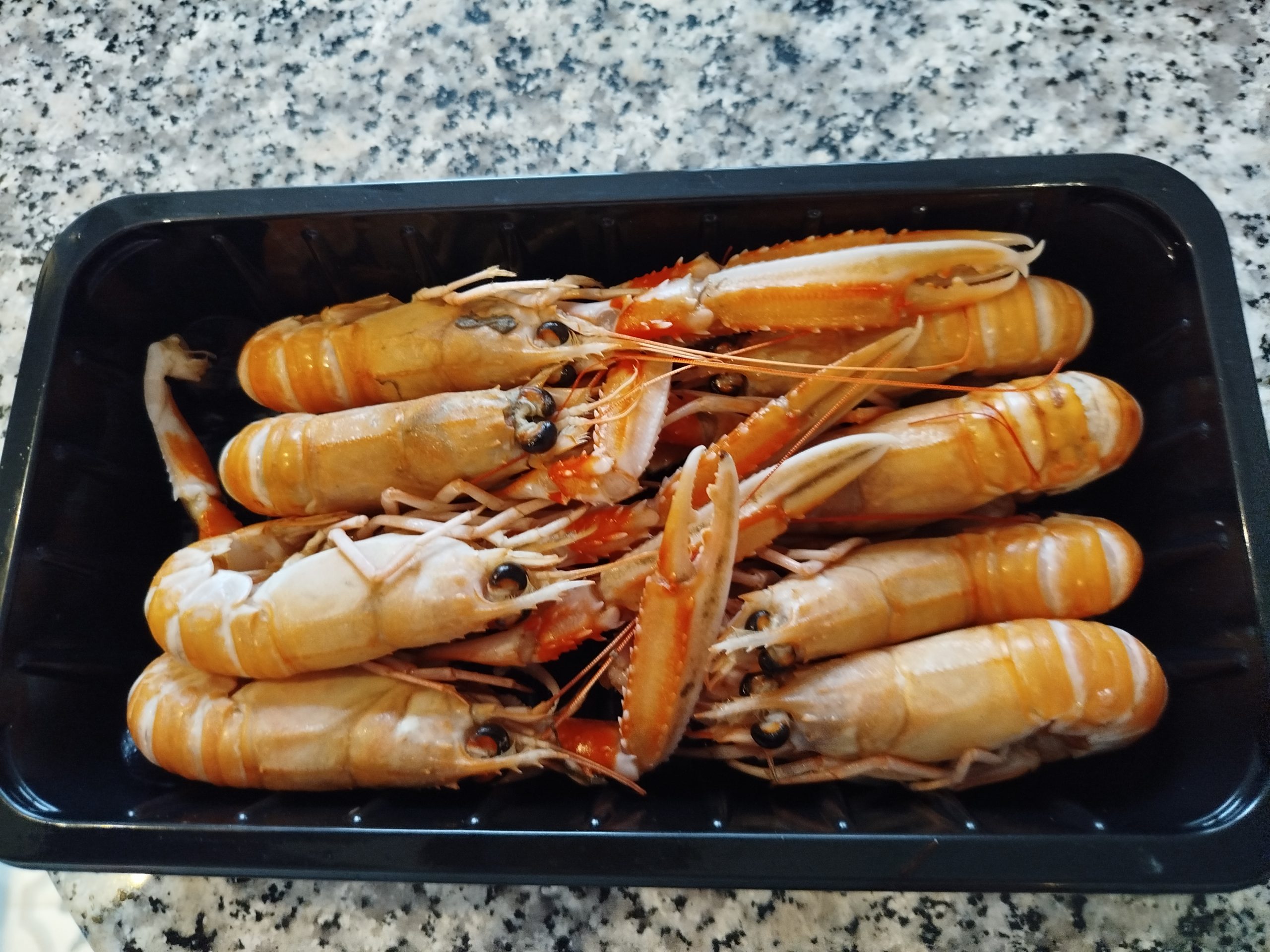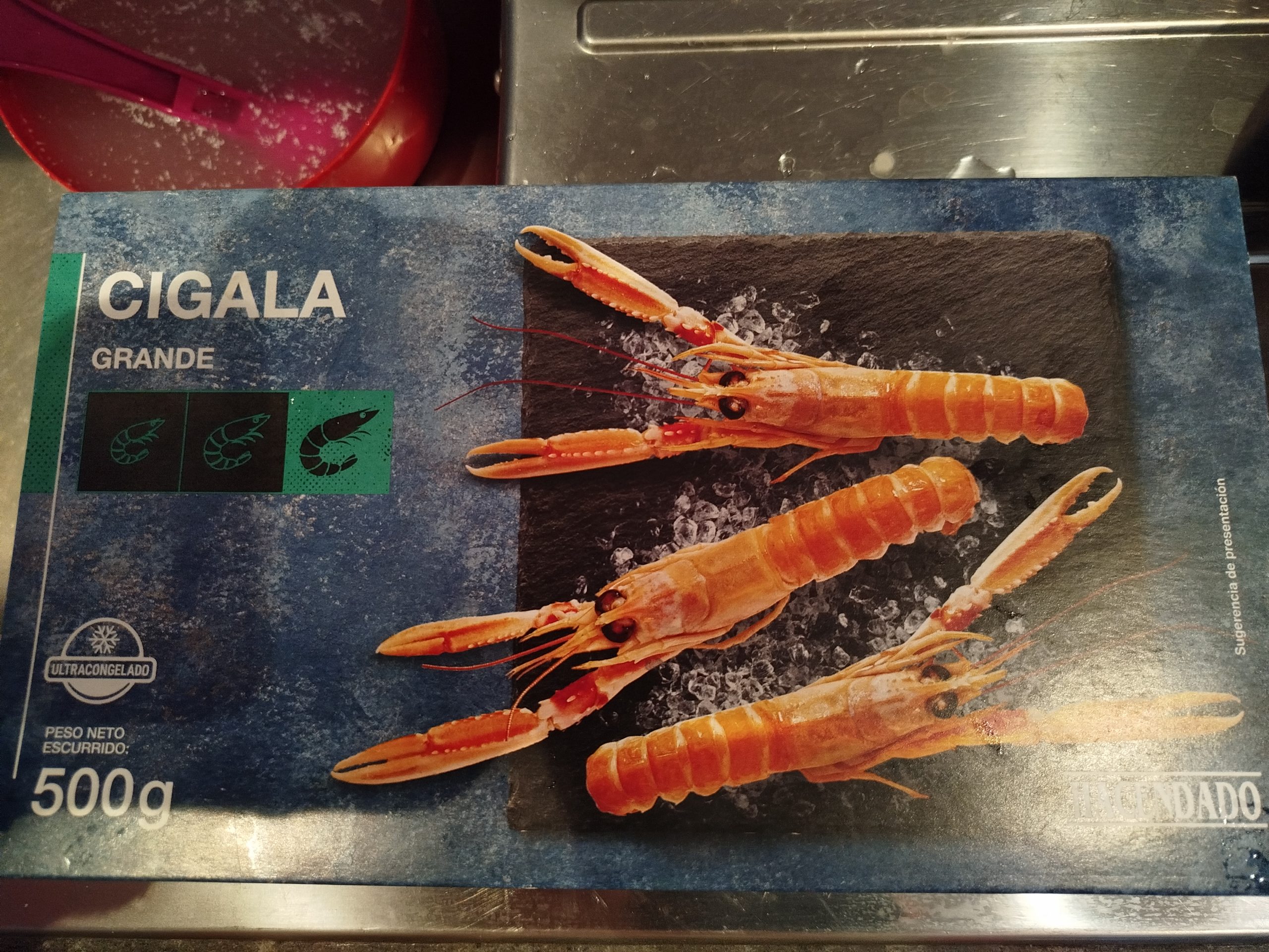 Acompañado esta vez de unas Cigalas grandes, que coci y estaban muy buenas y jugosas.