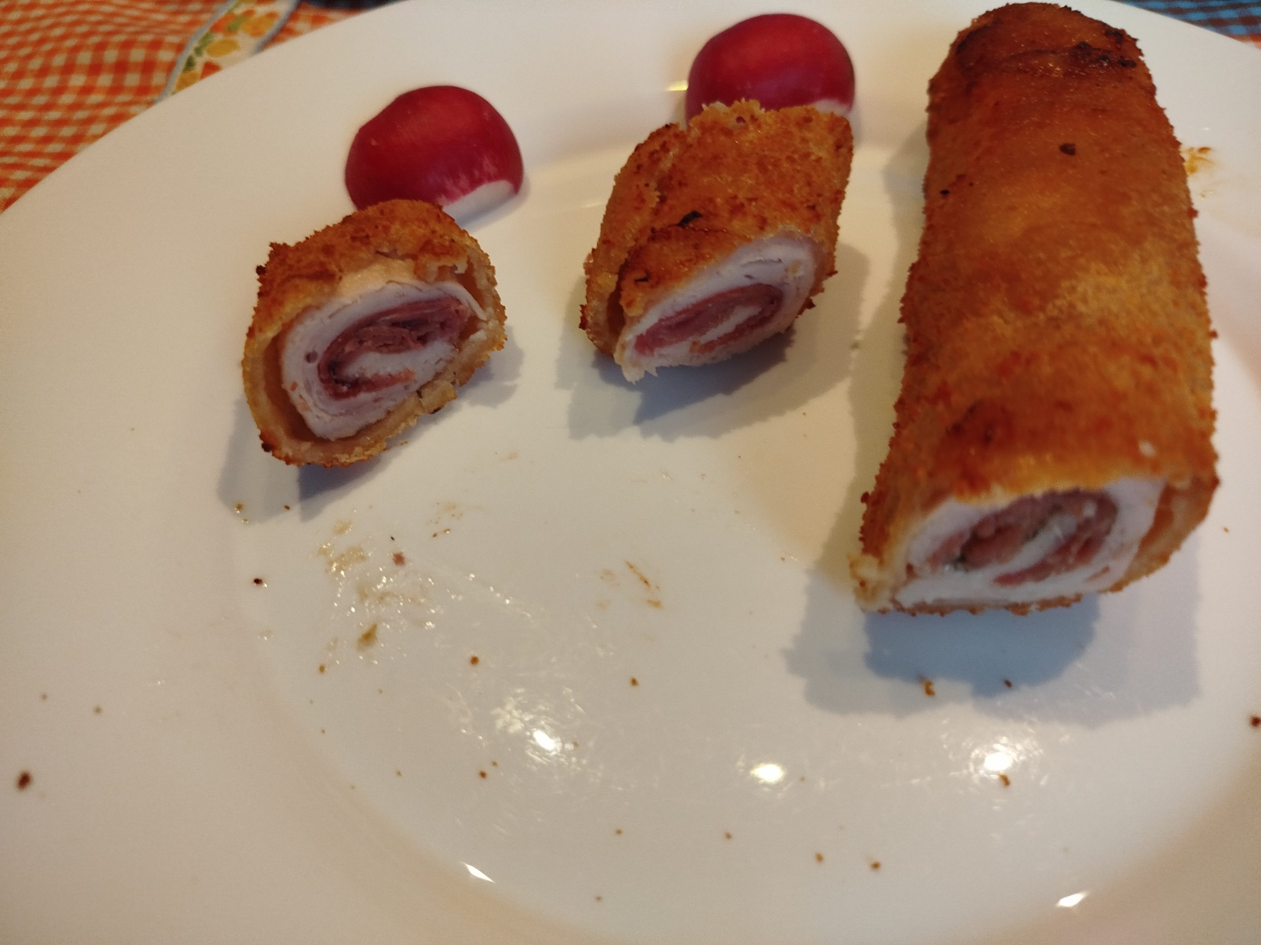 📜📷Receta y fotos realizadas el 20/12/2025 Flamenquín de pollo, estilo Cordobés del mostrador de Carrefour, venta unidad, muy rico.