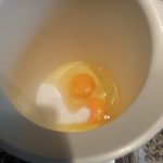 Ponemos en el vaso batidor, los huevos y azúcar, y batimos hasta cambiar de color.