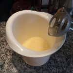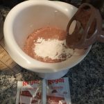 Incorporamos la mitad de la leche y los sobres de cuajadas, mezclar todo muy bien.