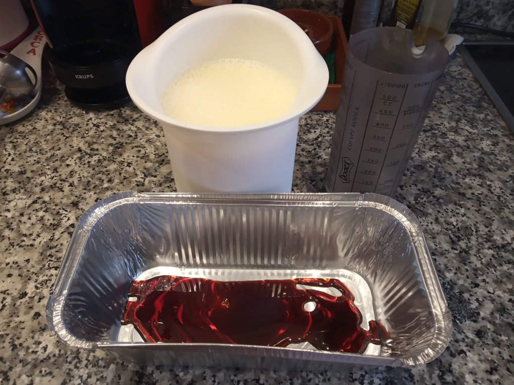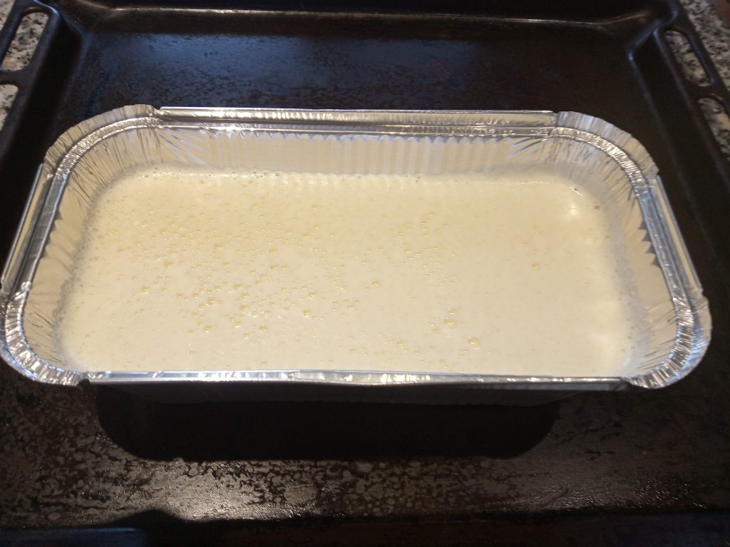 Pones el molde en la fuente de horno, le echamos el preparado con cuidado.