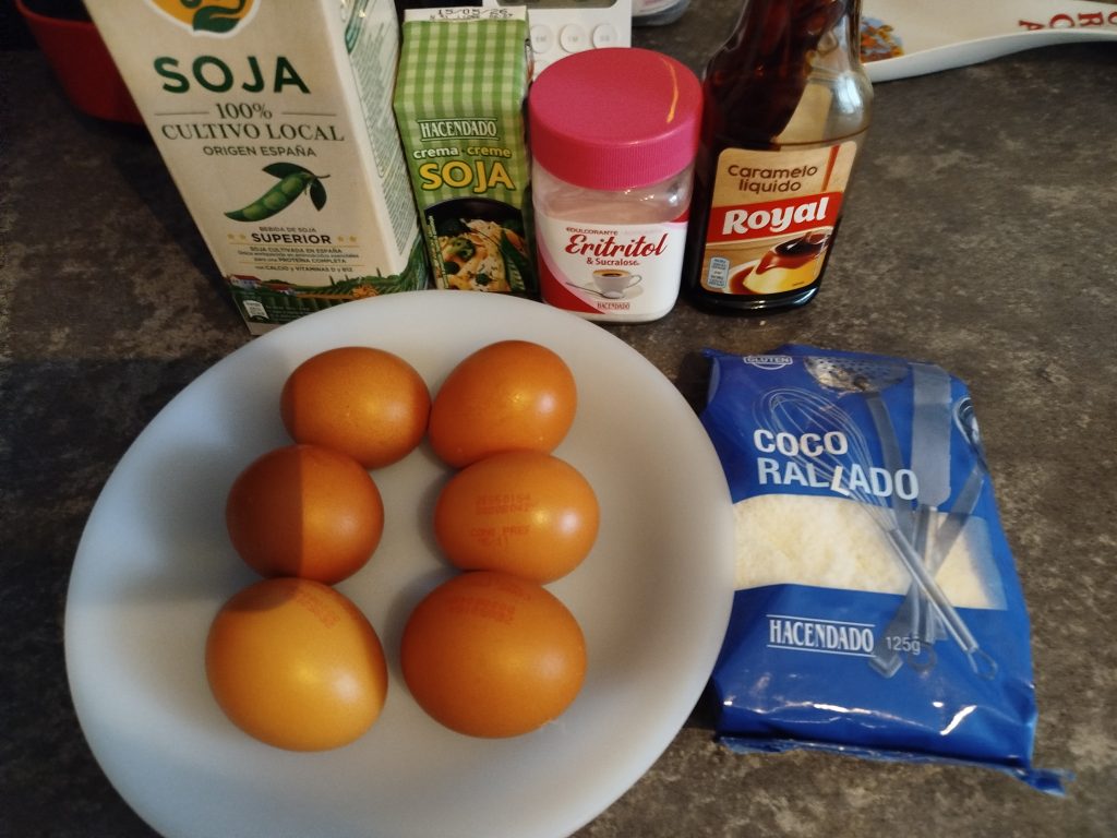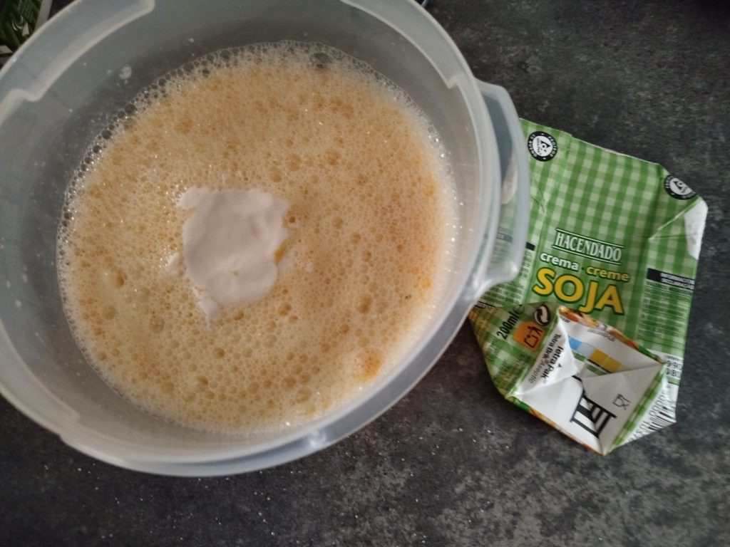 - 200 ml de crema de soja y 3 cucharadas de Eritritol o