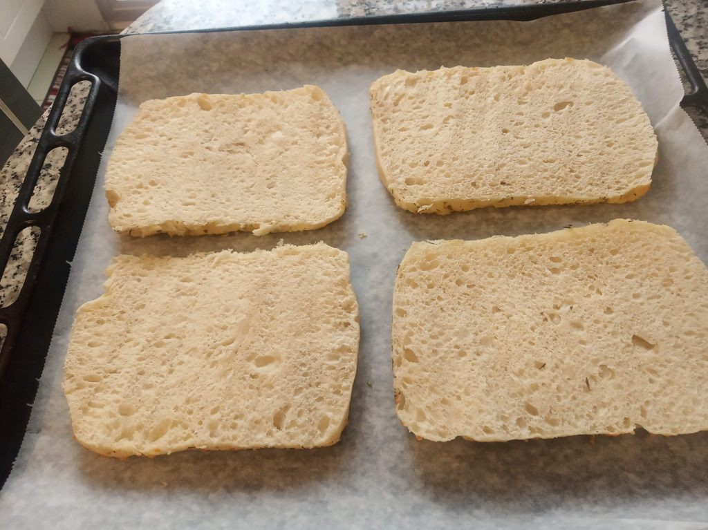 Cortar las Focaccia por la mitad, separando la parte de abajo y de arriba.