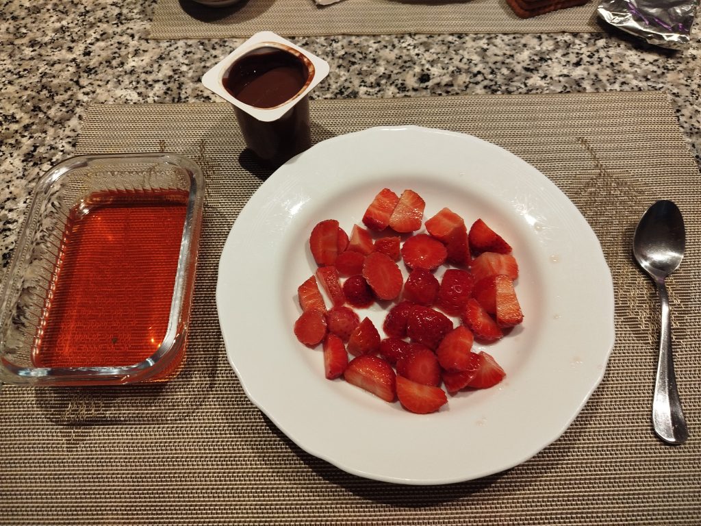 Suelo dividir en tres tandas el medio kilo de fresas, eso a gusto de cada uno, y las tomo por la noche para cenar.