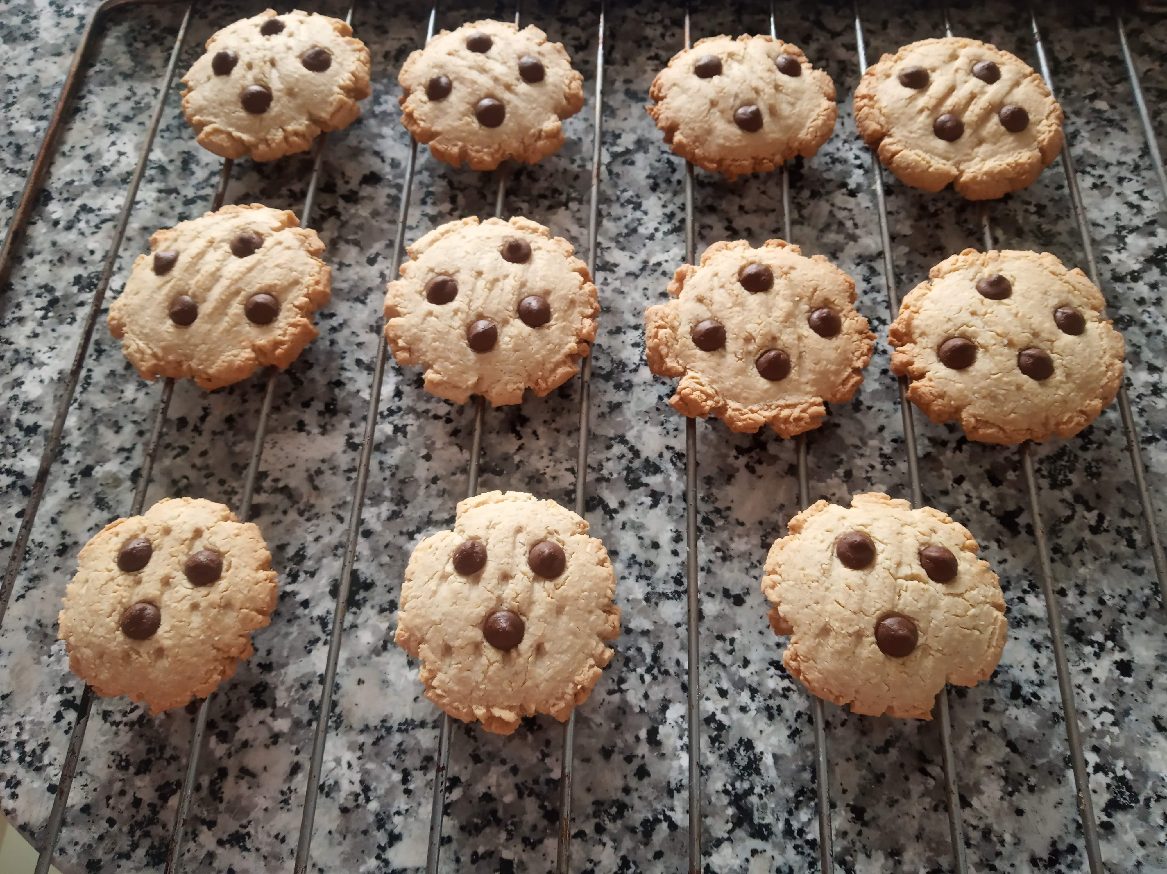 Me salieron 12 galletas, y tengo guardado en el frigorífico, el resto de la masa en el bol tapado, para hacerla otro día. Acuérdate sacarlas del frigorífico para que se pueda manejar y no esté dura. Otra opción es hacer dos tandas.