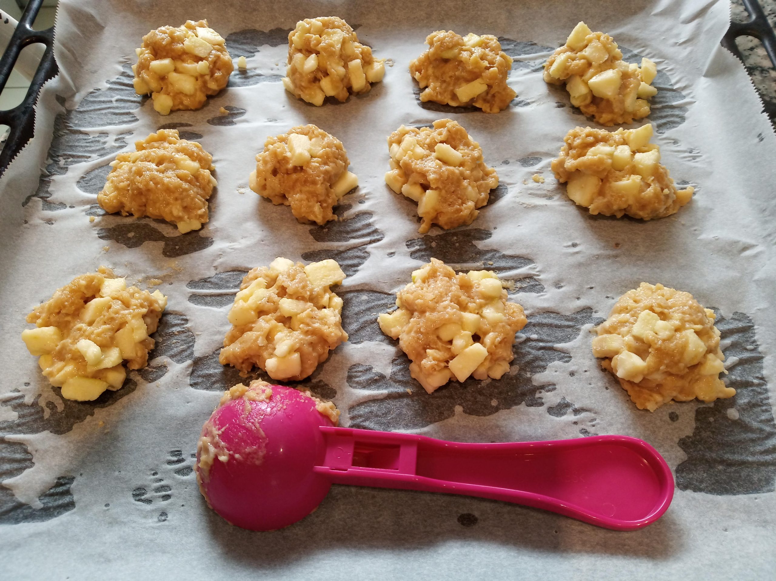 En la fuente de horno sobre papel de hornear, vamos poniendo montoncitos más o menos del mismo tamaño, se puede hacer en dos tandas.
