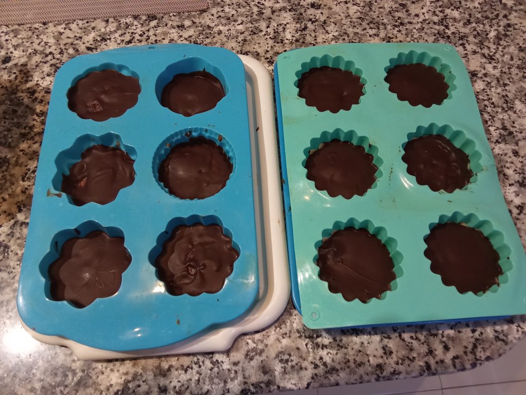 Poner el chocolate troceado y la mantequilla en un bol y hacer al microondas, de 30 segundo en 30 segundo, para que no se queme el chocolate.