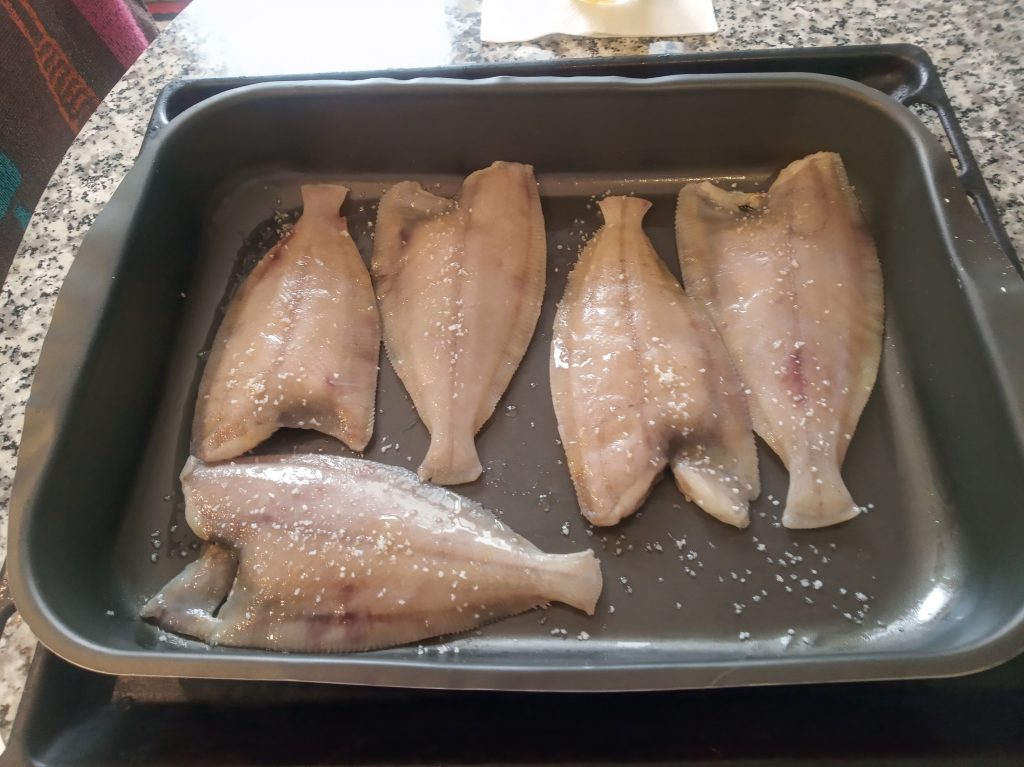 Lavar bajo el grifo el Gallo, y colocar en la fuente, echándole un poco de aceite y sal gorda.