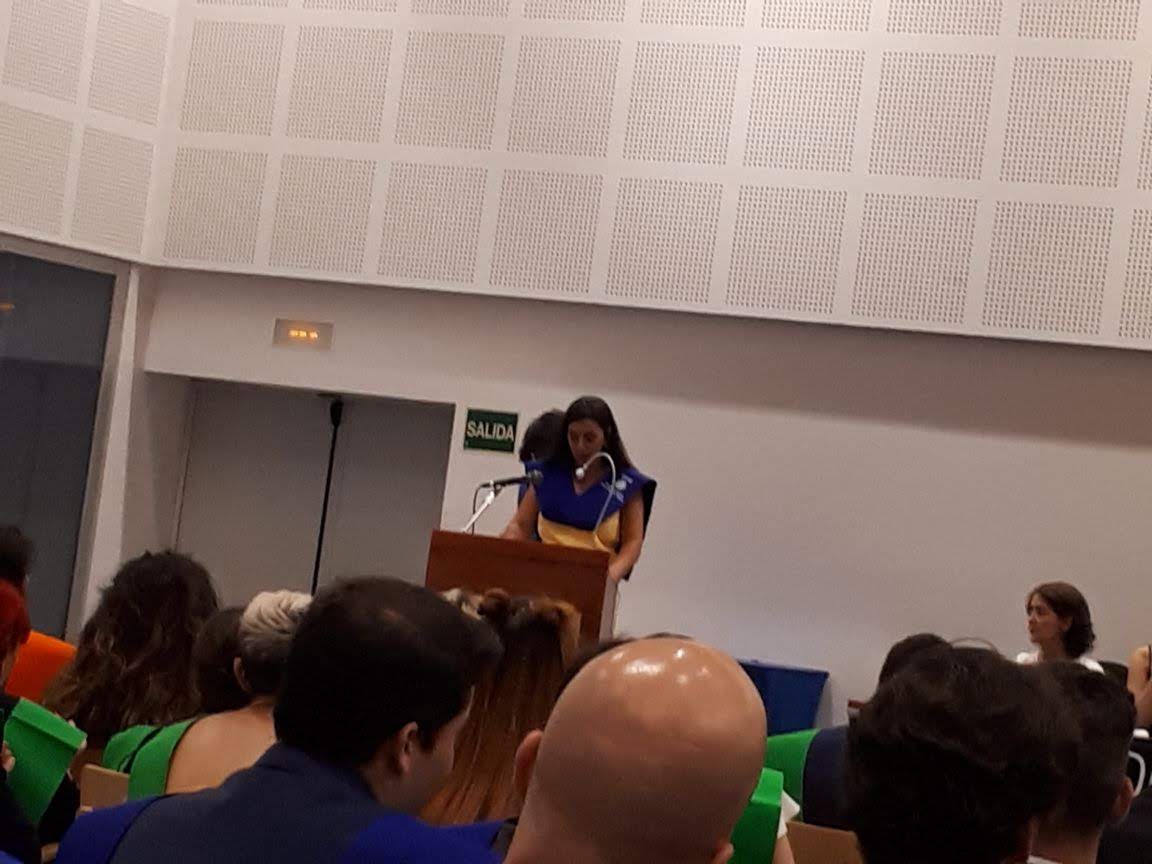 IMG-20180630-WA0034 Publicado el 3 julio, 2018 a 1152 × 864 en Graduación en ADE de Sergio el 28 de Junio del 2018 Hablando una de las alumnas de ADE