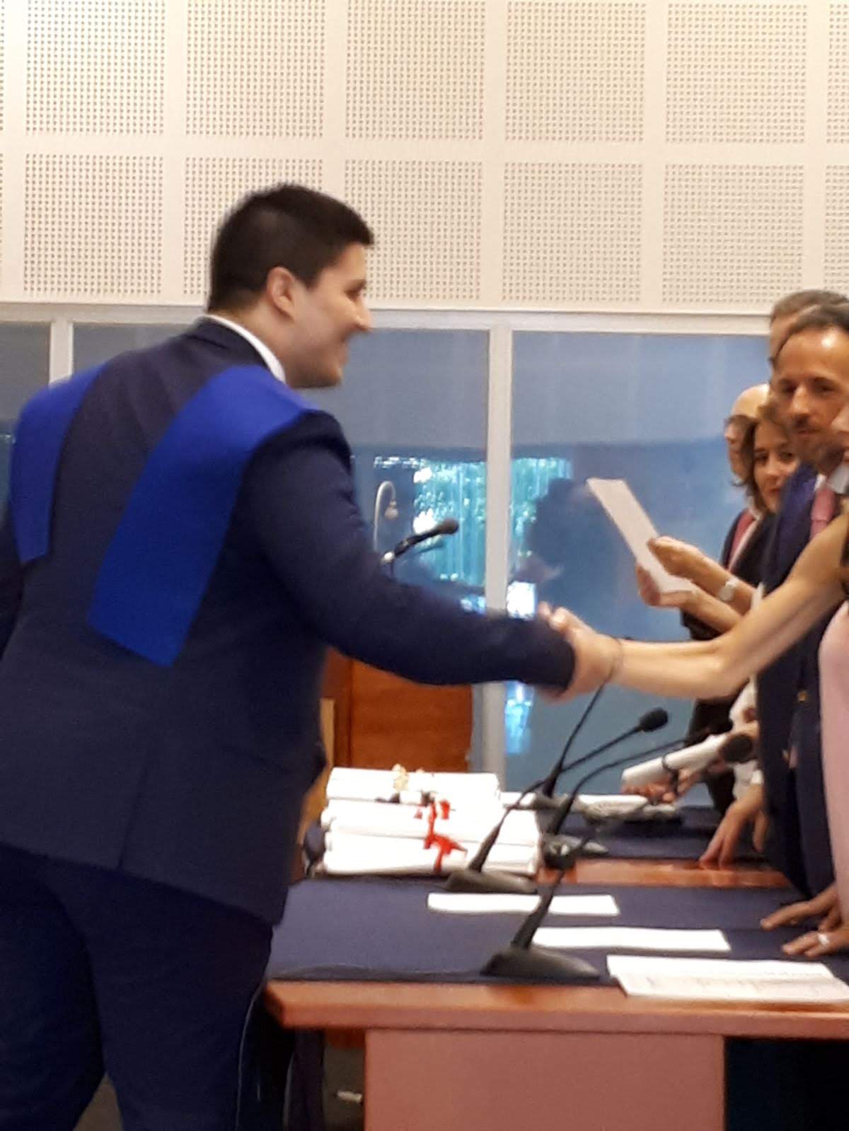 IMG-20180630-WA0065 Publicado el 3 julio, 2018 a 1200 × 1599 en Graduación en ADE de Sergio el 28 de Junio del 2018 Sergio en la entrega de la Orla Universitaria