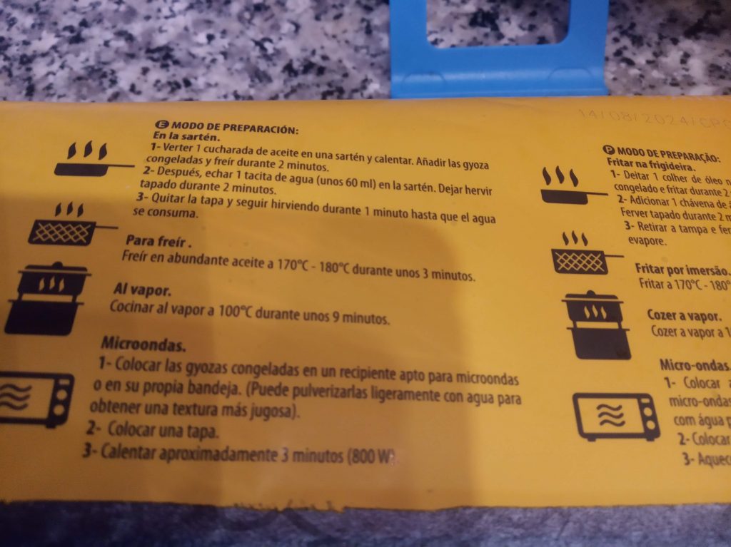Es la primera vez que las comemos en casa, compre un paquete de Gyozas de pollo, congelada en Mercadona, en diciembre, que suele haber más productos, para las fiestas, no sé si seguirán trayéndolo.