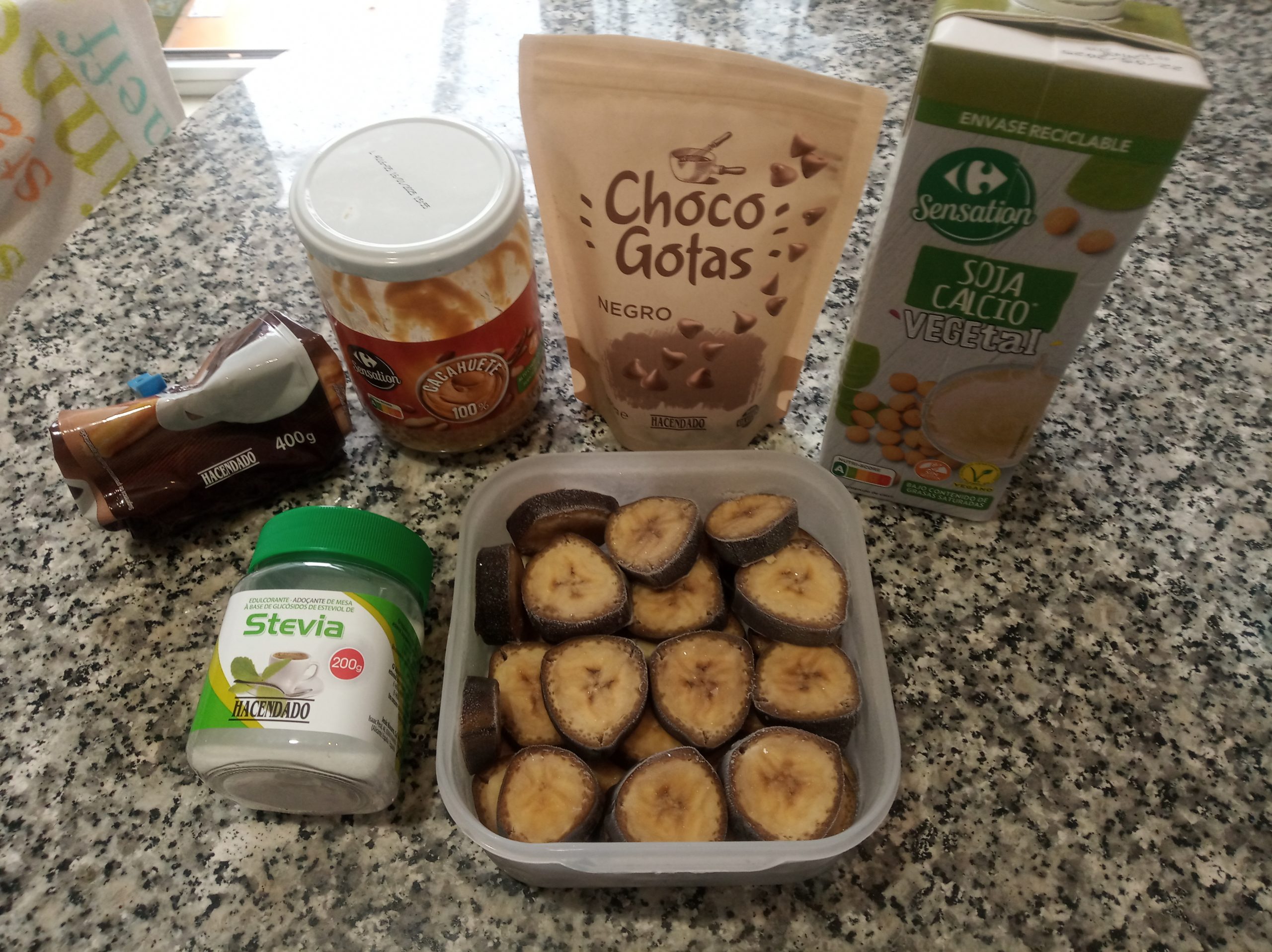 En el vaso picador de la Minipimer o en el de jarra, echas la leche, la Stevia, crema de cacahuete y el chocolate en polvo a la Taza o si tienes Proteico, lo mezclas y le vas añadiendo los plátanos troceados, sin piel, bátelo hasta que quede todo bien ligado, pruébalo si está a tu gusto de sabor, dulce, etc.