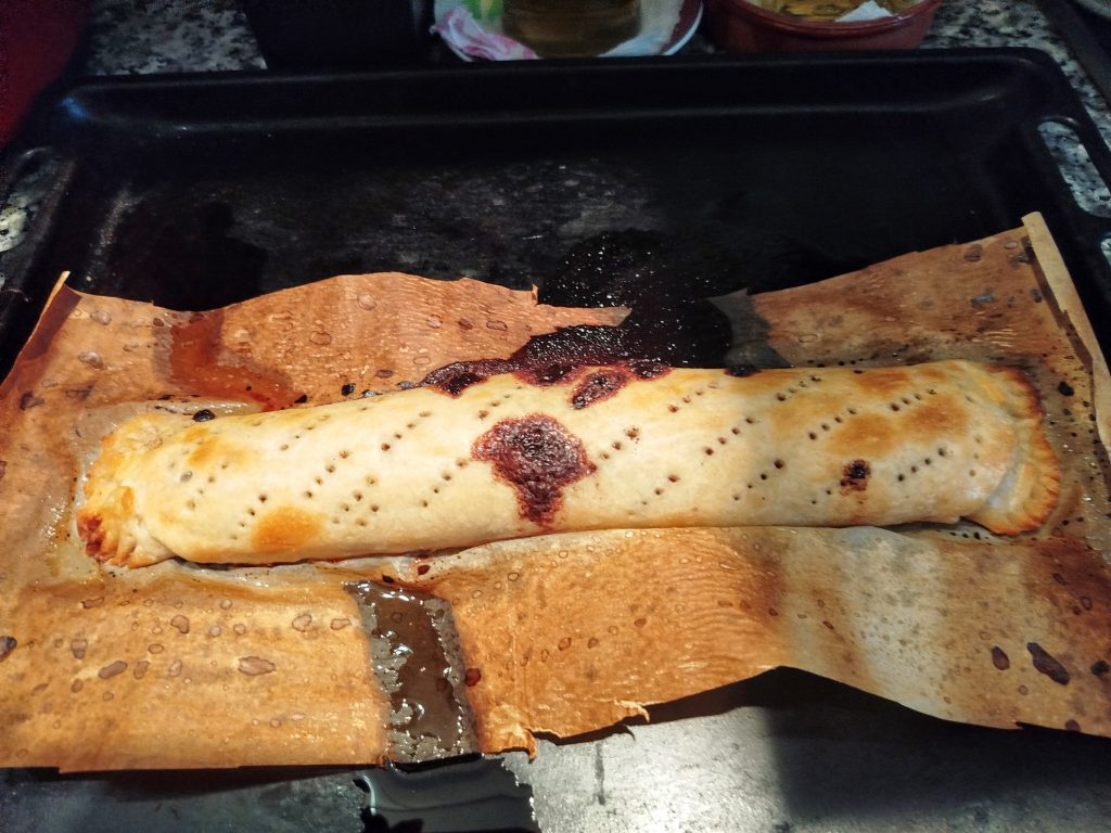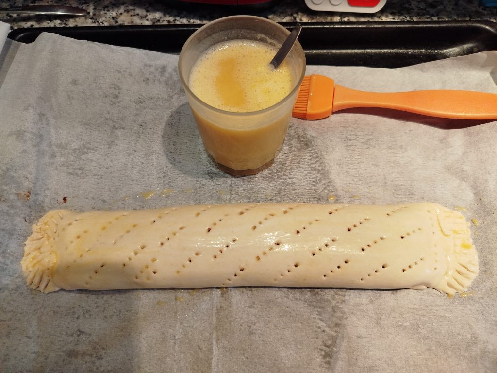 - 1 poco de zumo, leche o huevo para pintar el hojaldre