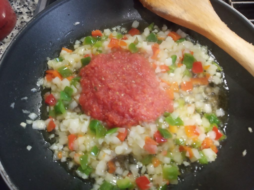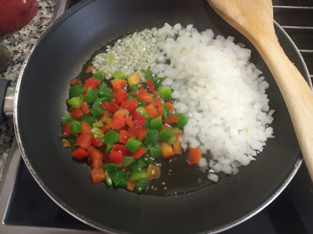 - 1 poco de cebolla, pimiento y ajo fresco o congelado