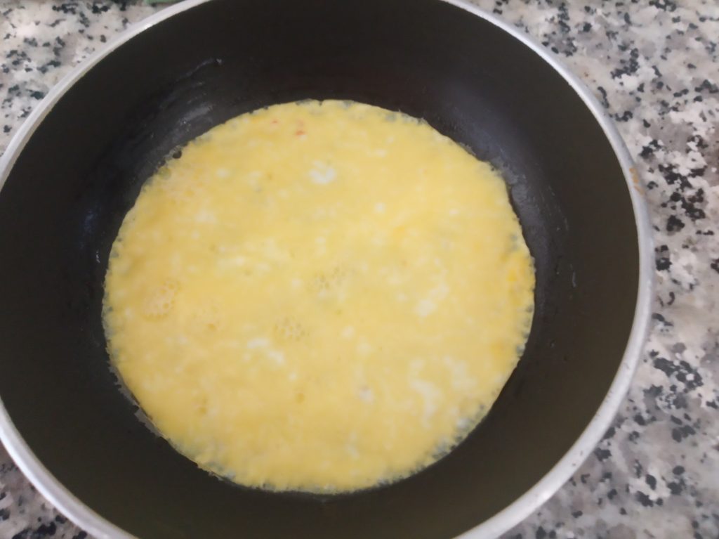 En una sarten, echar un poco de aceite y añadir la cebolla, pimiento y ajo, troceado con un poco de sal.