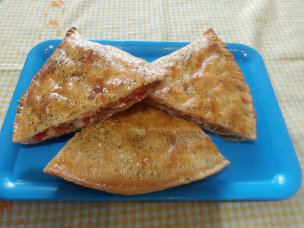 📜Receta tomada de Hojaldre relleno de salmón fresco, tipo empanada.