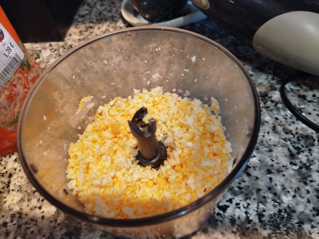 Empezamos, con los huevos cocidos, o cocer en agua hirviendo durante 10 minutos.