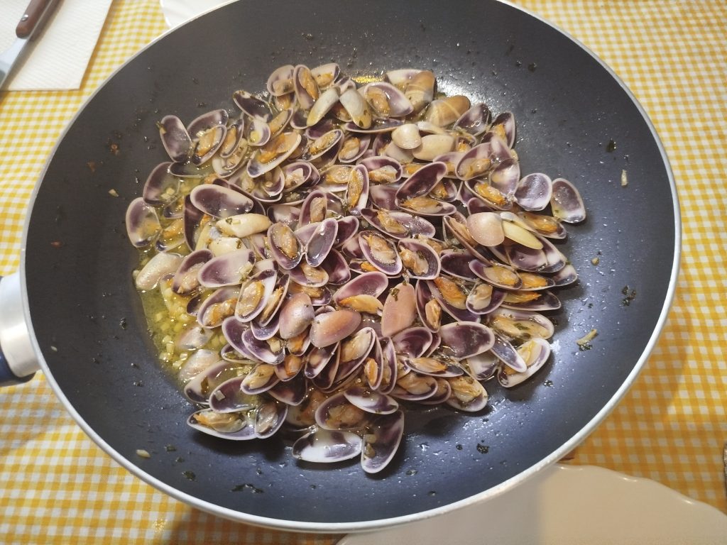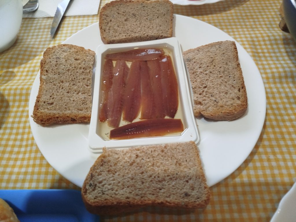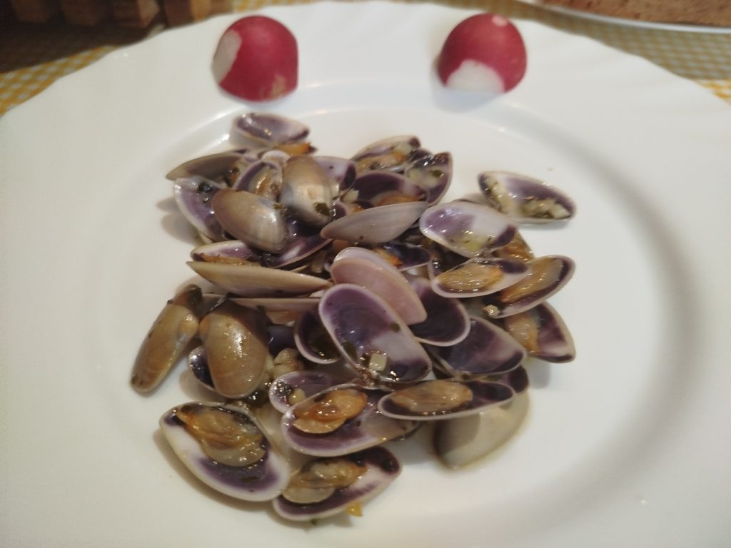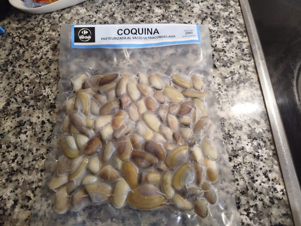 😊Esta vez lo acompañe con unas coquinas al ajillo y sardinas ahumadas con pan tostado.