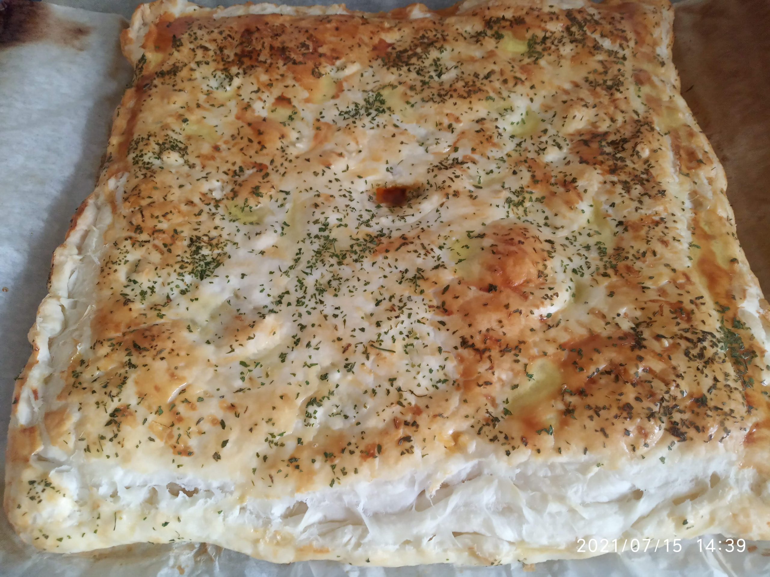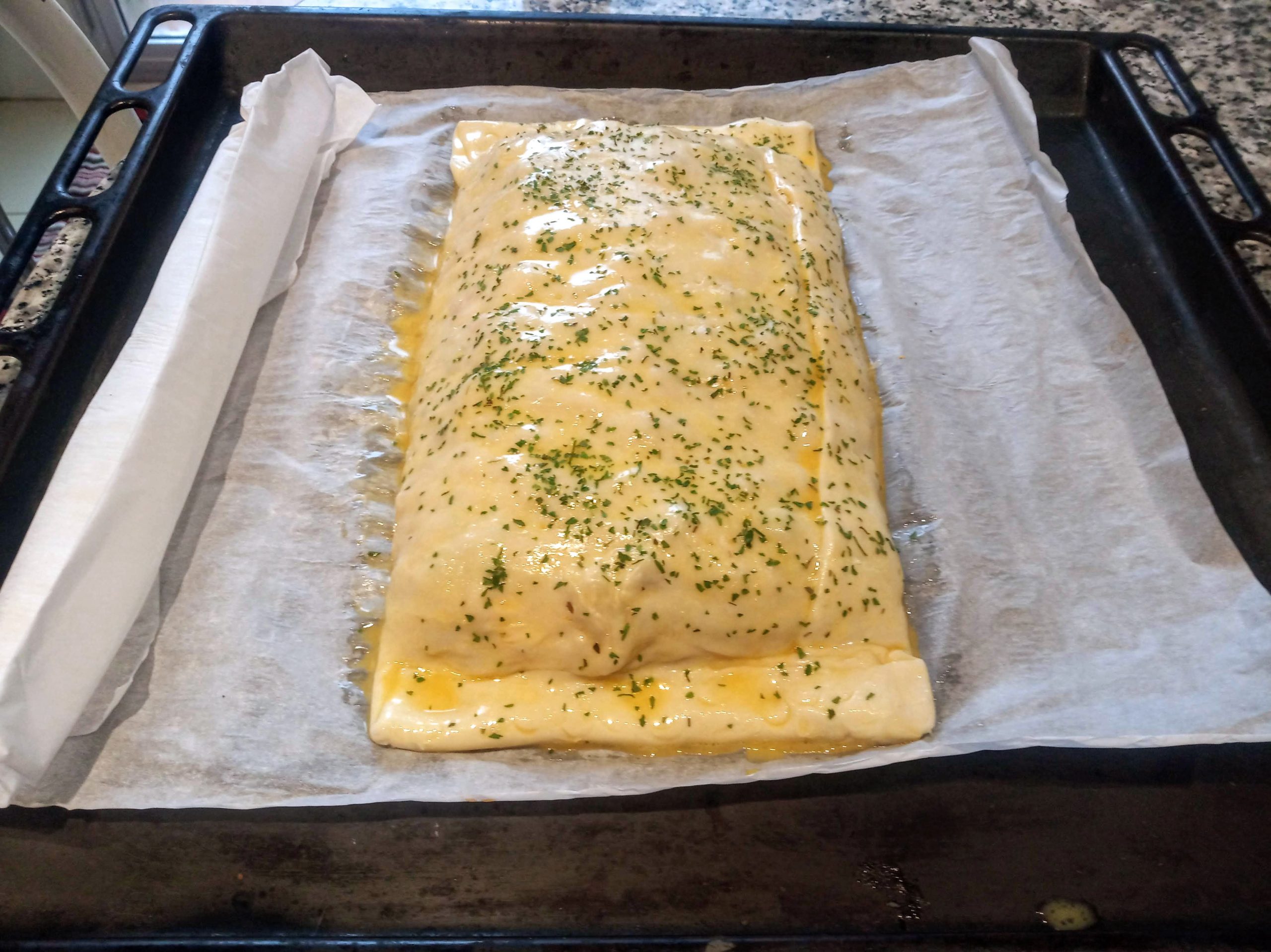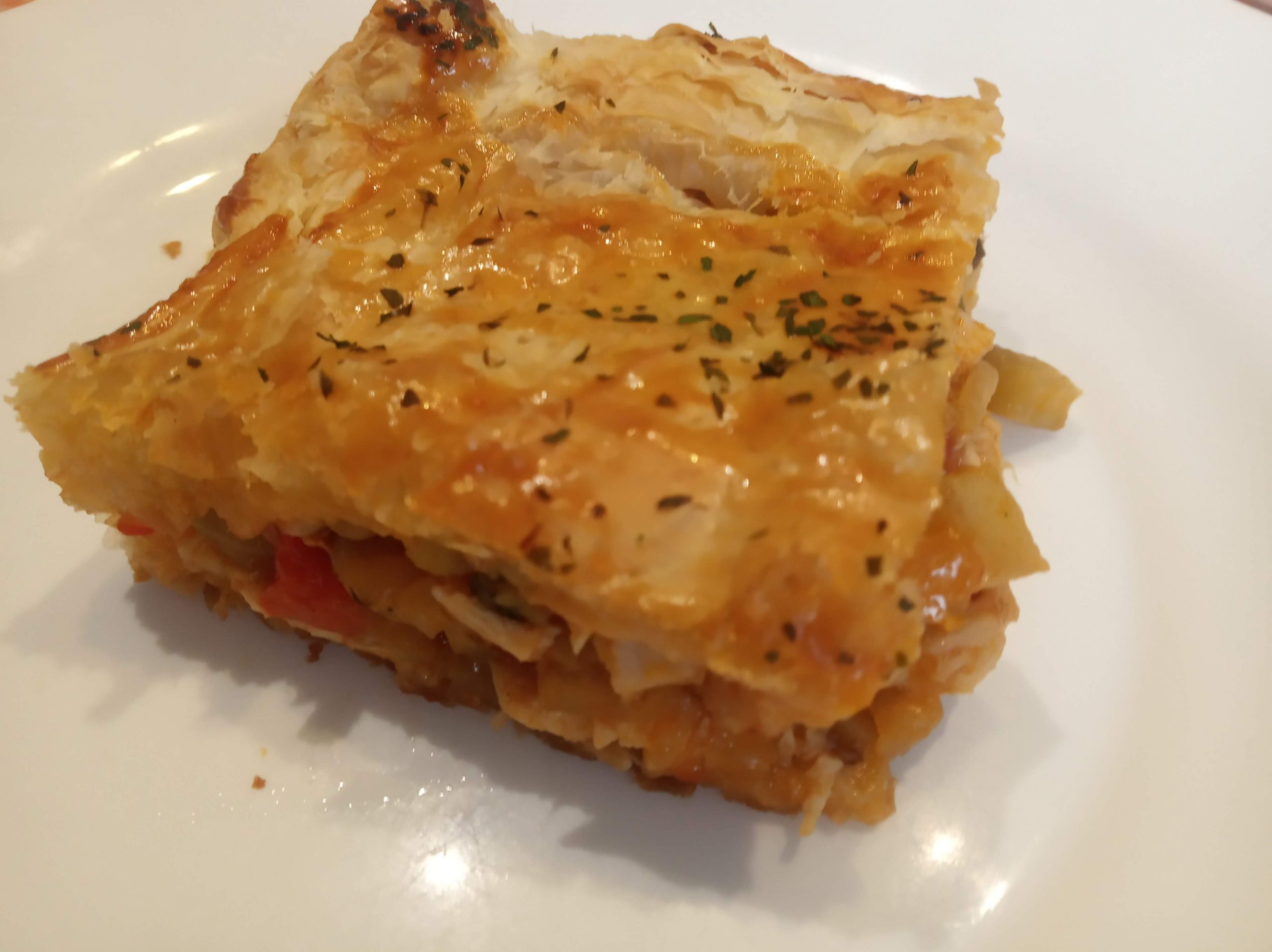 Dejo abajo las imágenes, donde utilice dos masas de hojaldre entera y queda más plana y fácil de comer.