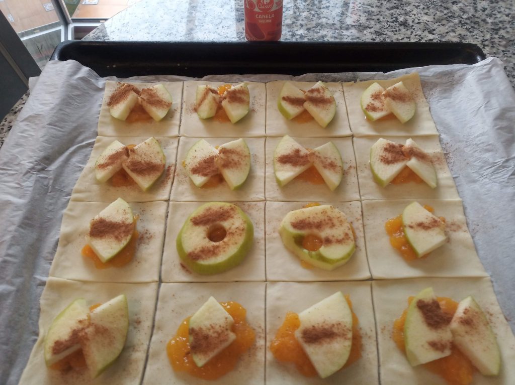 Repartir los trozos encima de la mermelada, y echar un poco de canela molida.