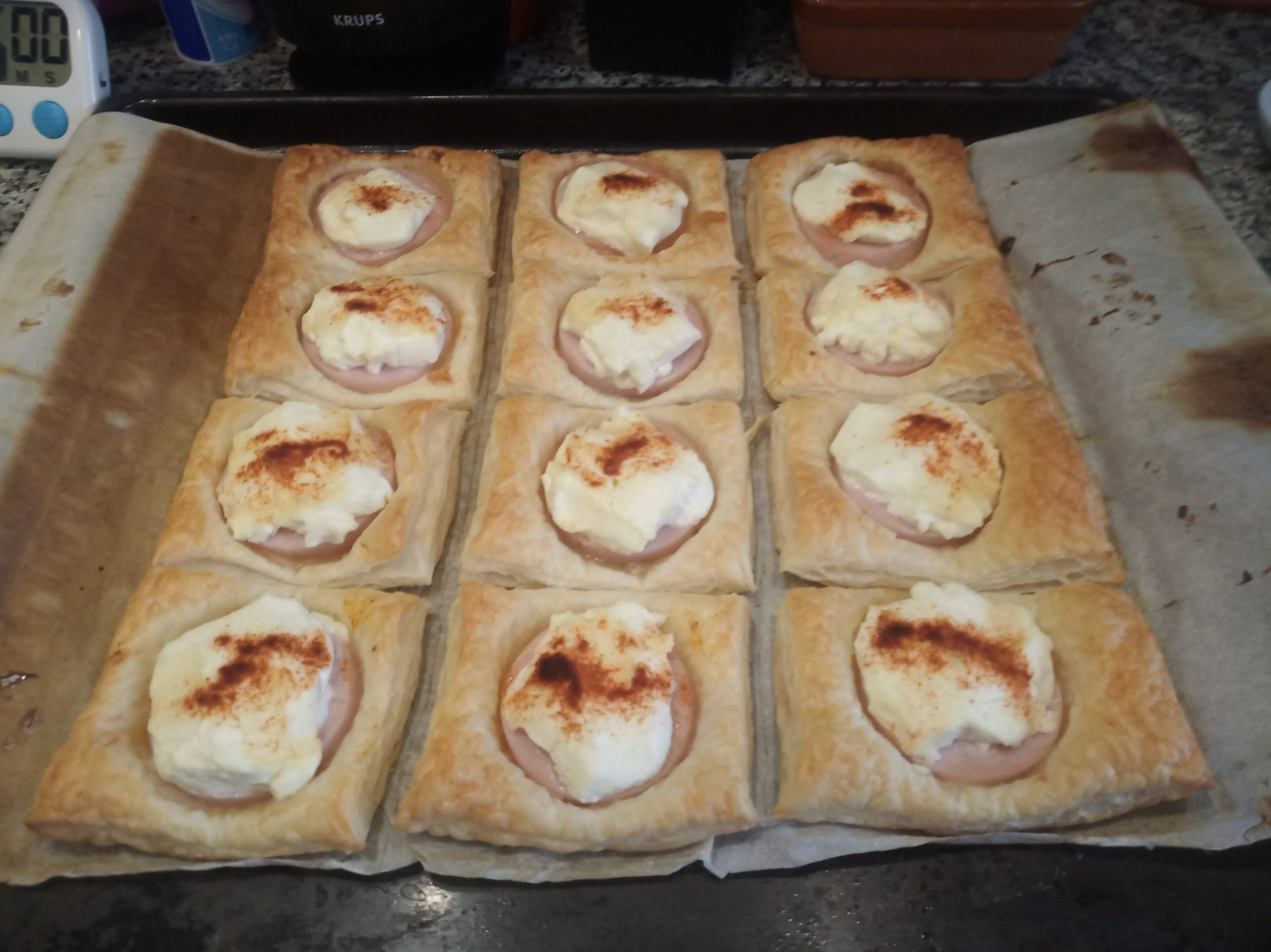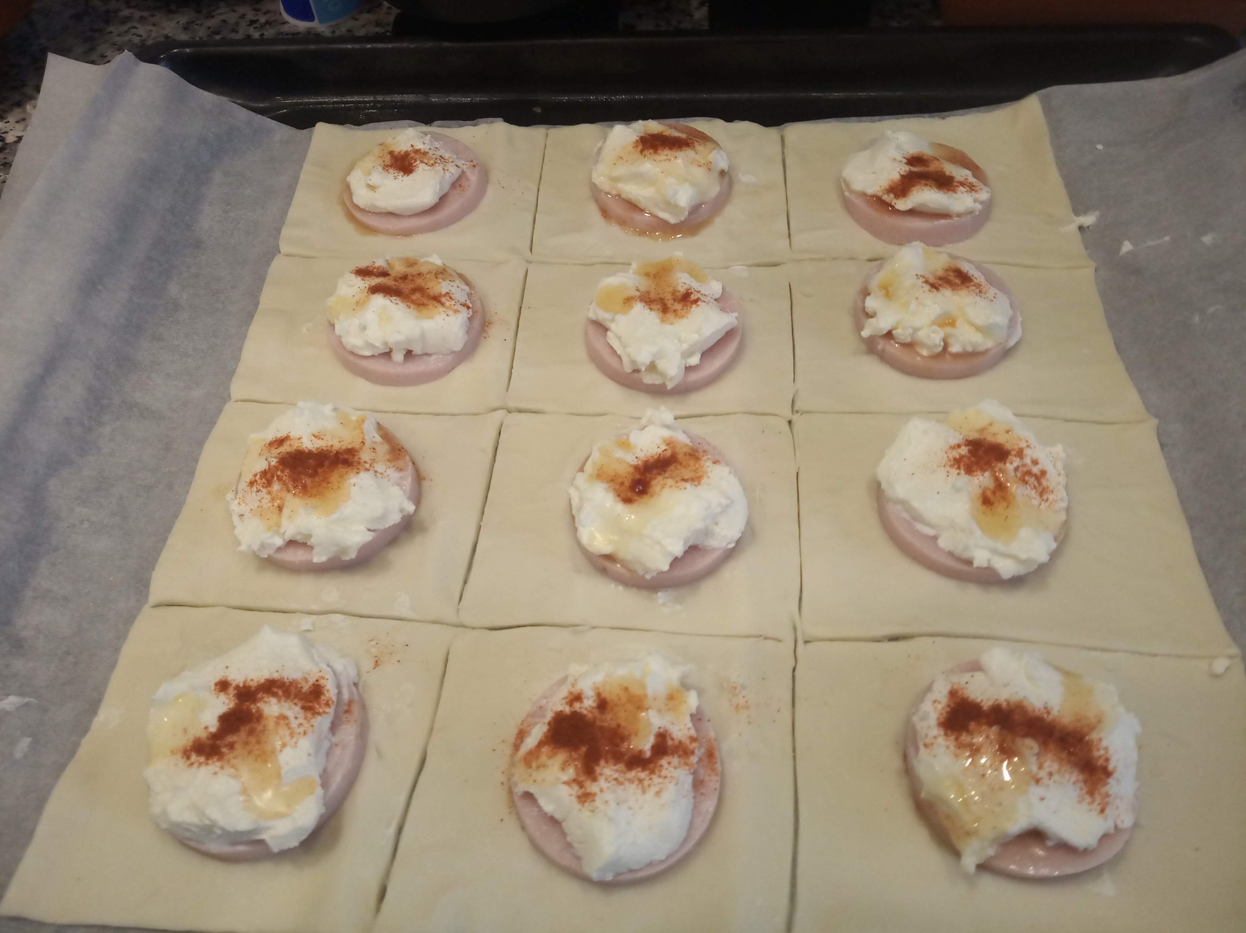 Las repartimos sobre la masa de hojaldre, dejando a los lados a ser posible la misma distancia.