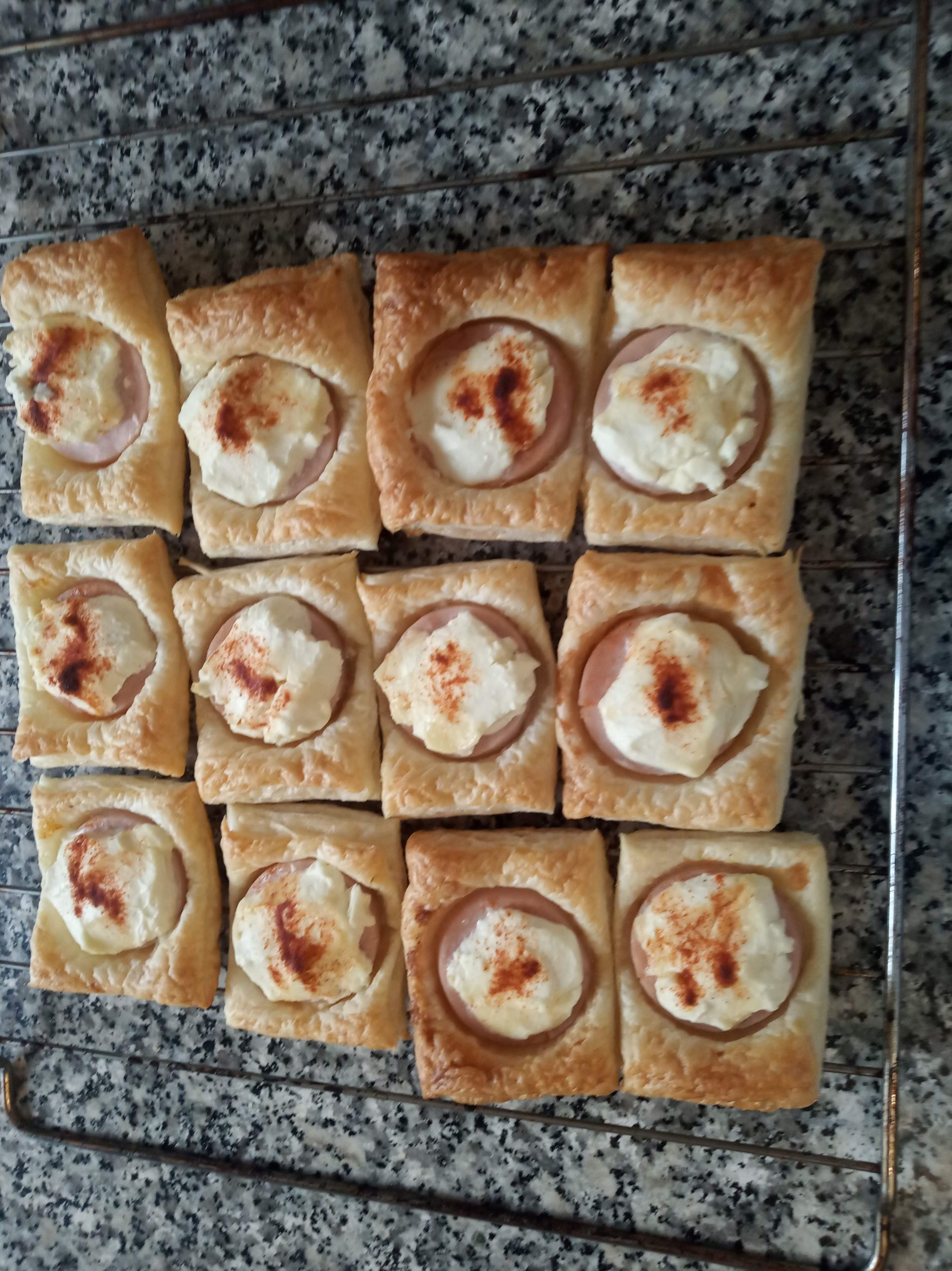 Sacar del horno y pasar los hojaldres a una rejilla para que se enfríen.