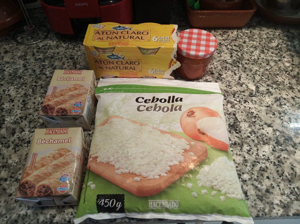 - 4 latas de atún natural o con aceite escurrido