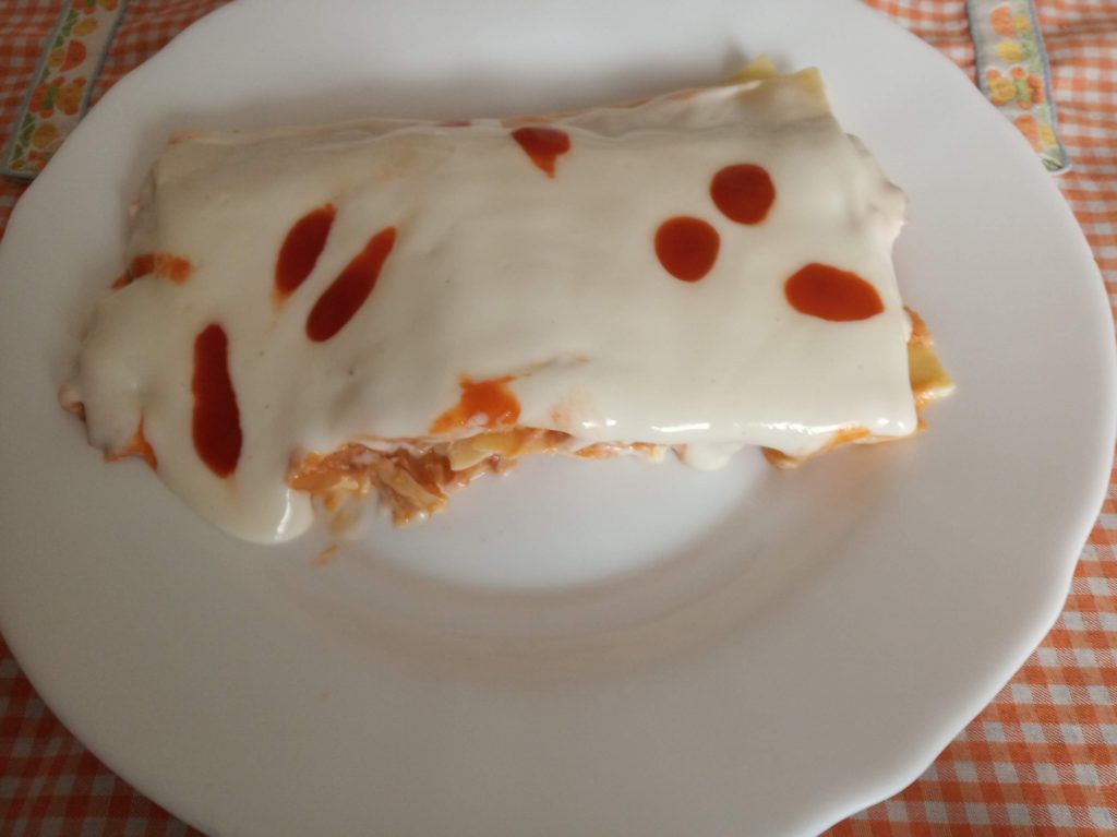 Receta tomada de mi blog con Canelones de atún con salsa bechamel, al horno.