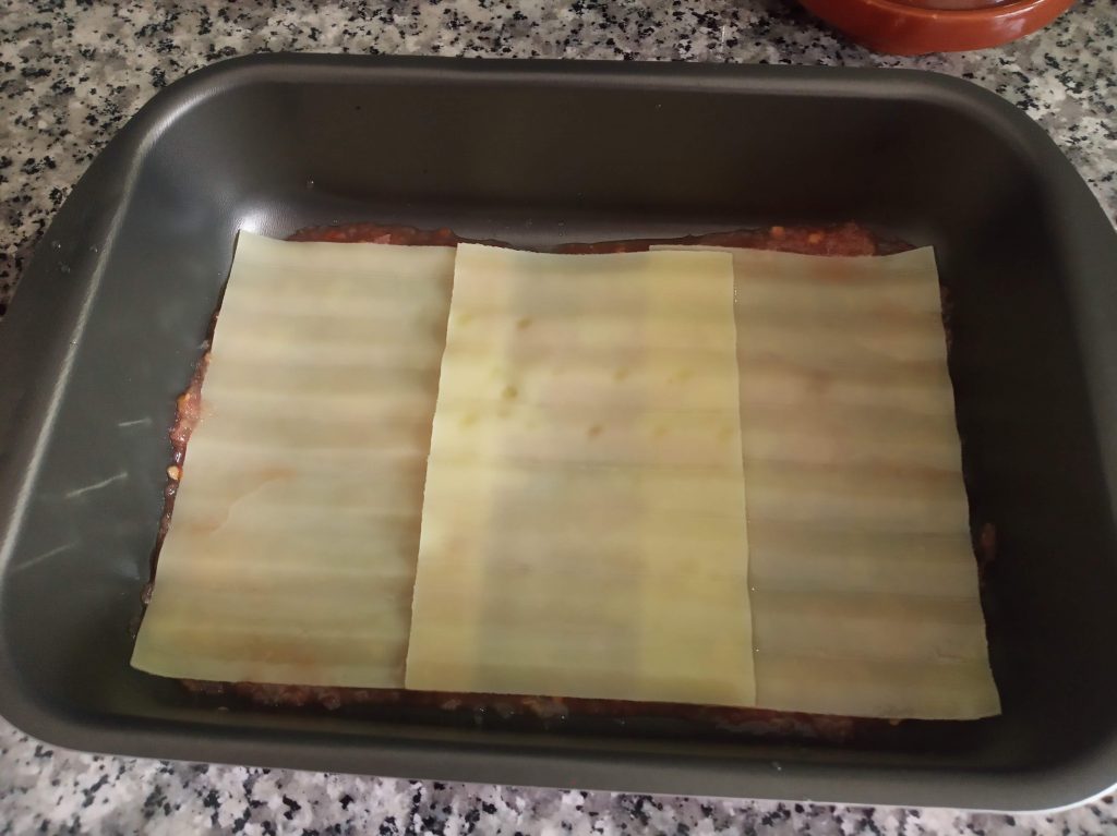 Empezamos poniendo las placas de lasaña, como indique el proveedor.