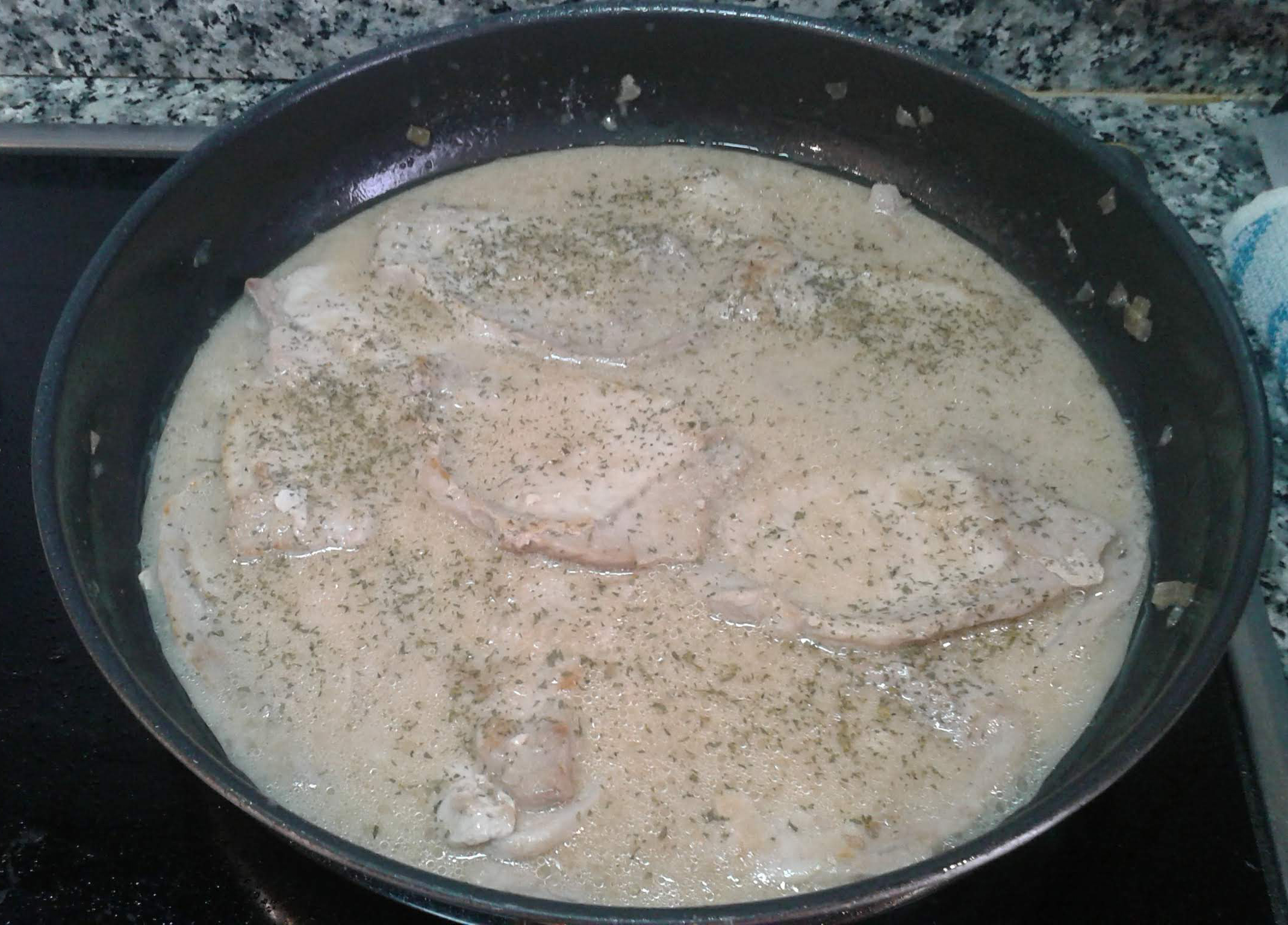 Poner otra vez los filetes en la sartén y echar la salsa por encima, remover muy bien y cuando empiece a hervir, apagar, espolvorear con perejil picado y dejar reposar tapado.