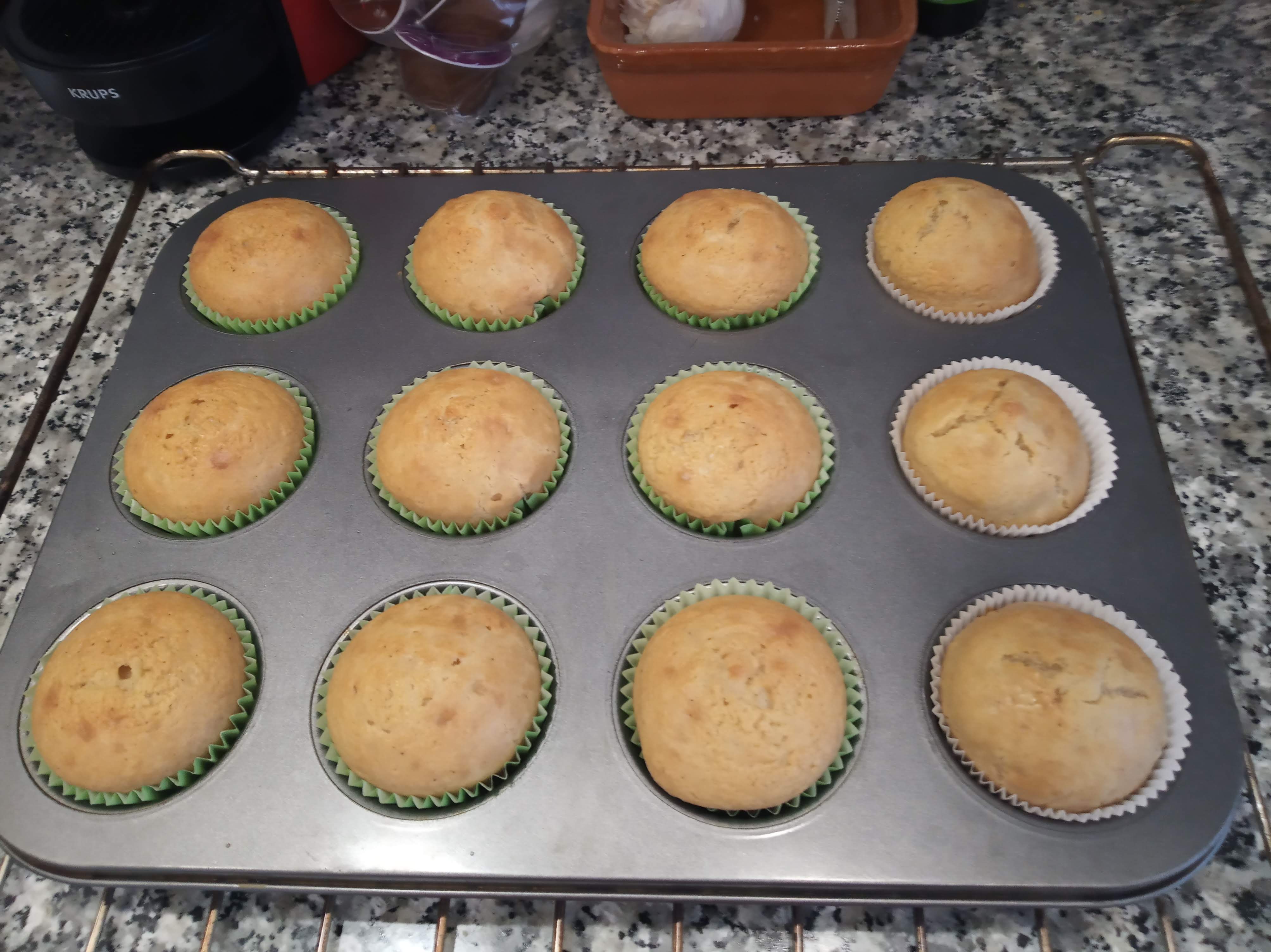 Con estos ingredientes, hice una tanda de 12 magdalenas, según la base que tenía, el resto lo eche en un taper más chico, y lo guarde en el frigorífico, para cuando se terminen, hacer el resto.