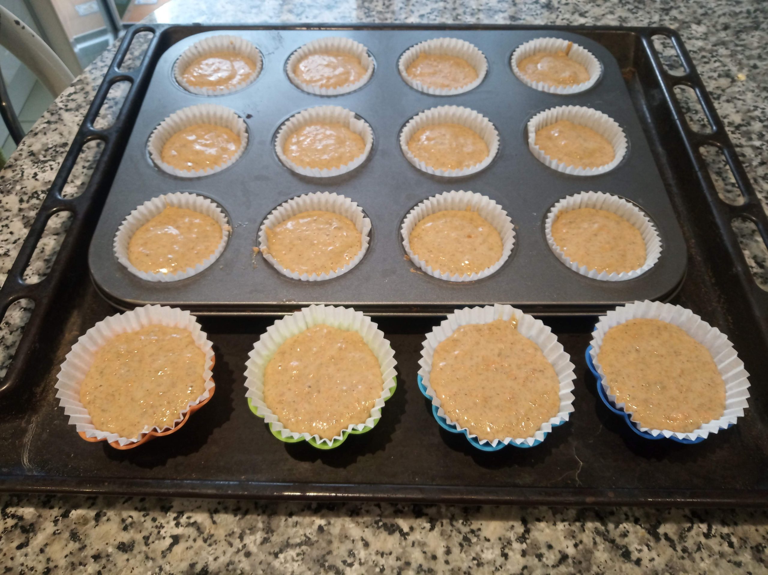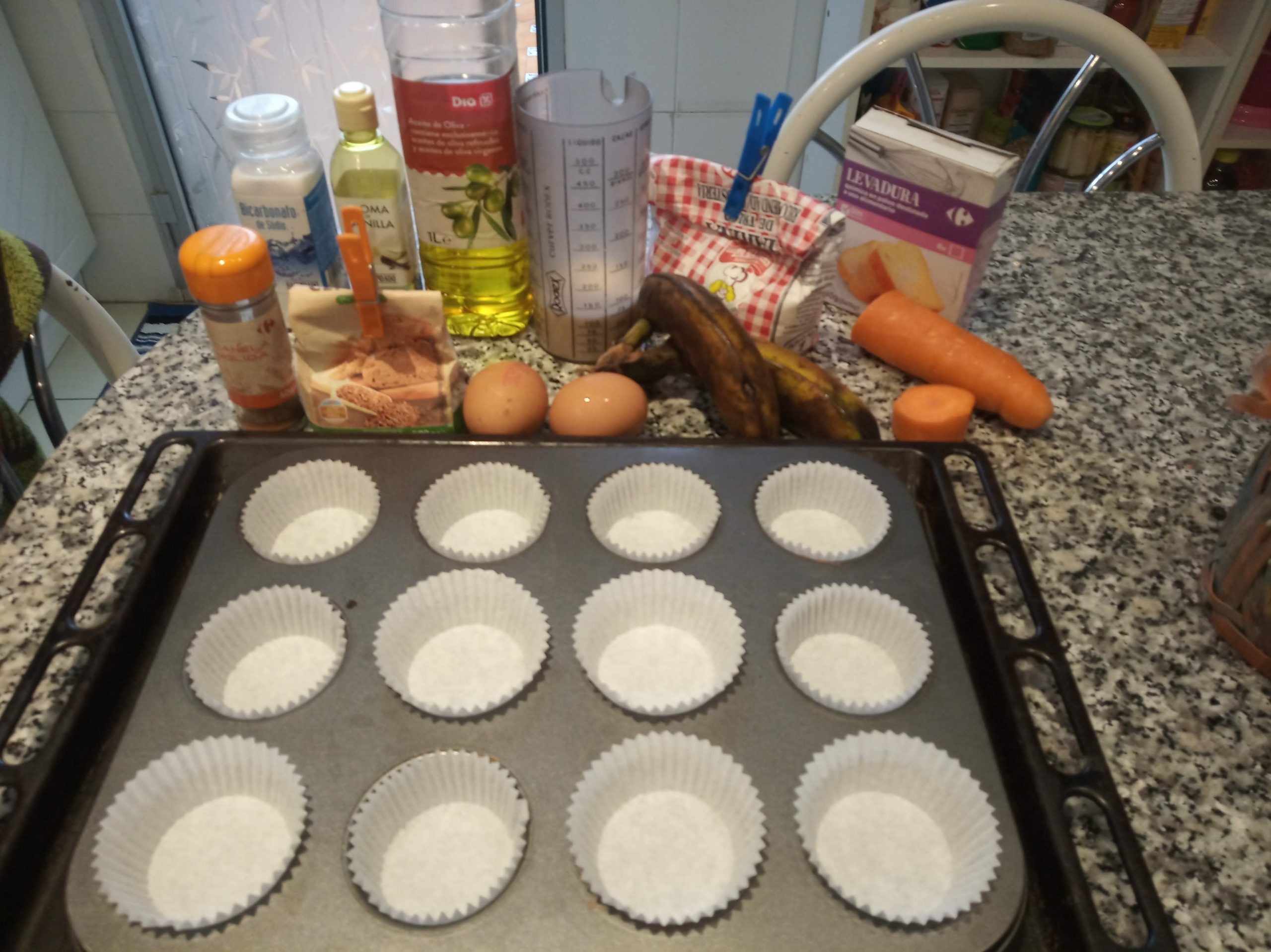 Precalentar el horno a 200ºC y preparar una bandeja con 12 cavidades de muffins.