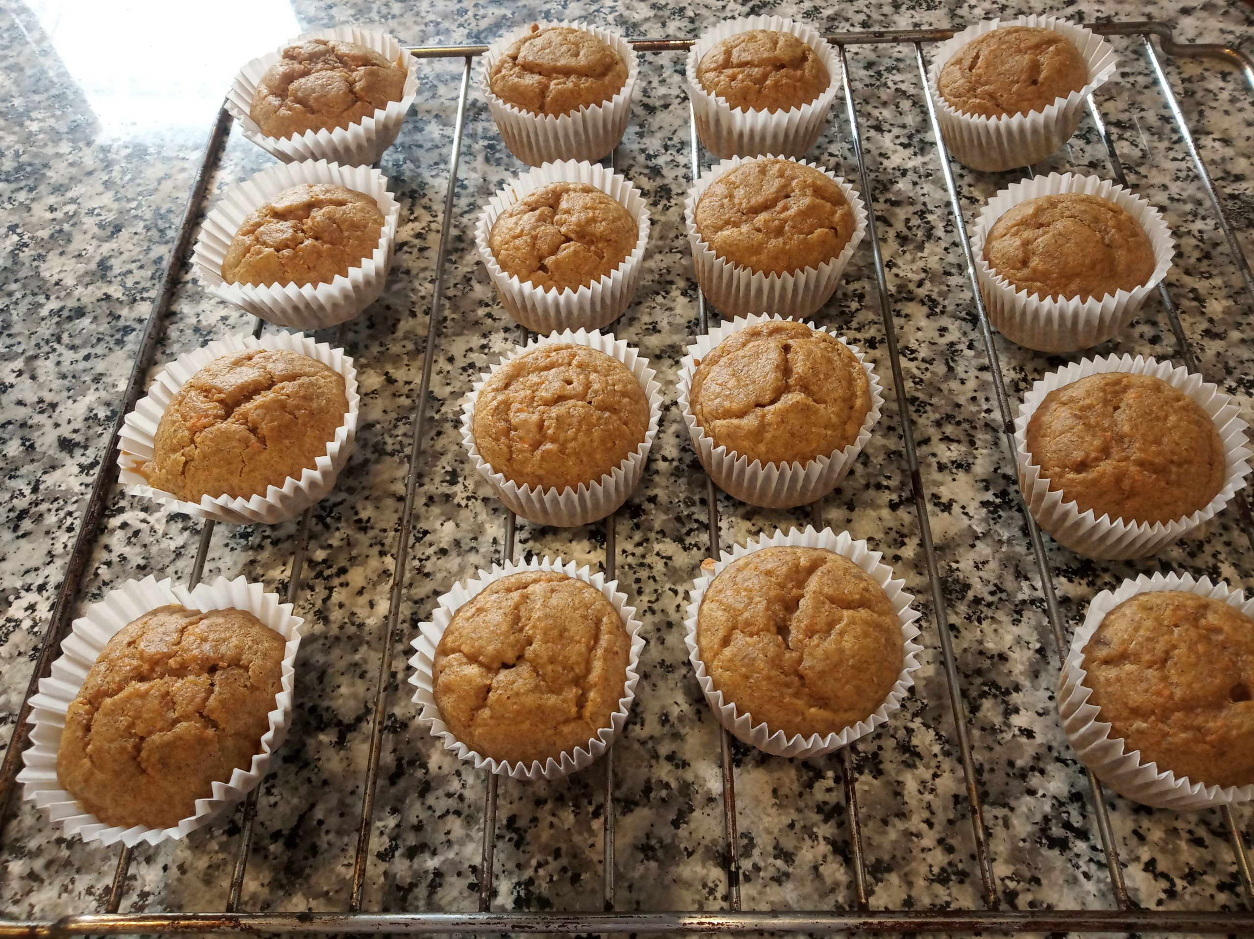 Repartir la masa en los moldes, hasta arriba y hornear durante unos 18-20 minutos, hasta que estén dorados y al pinchar con un palillo salga prácticamente limpio. Yo no los llene y utilice 4 más, pero subieron poco.