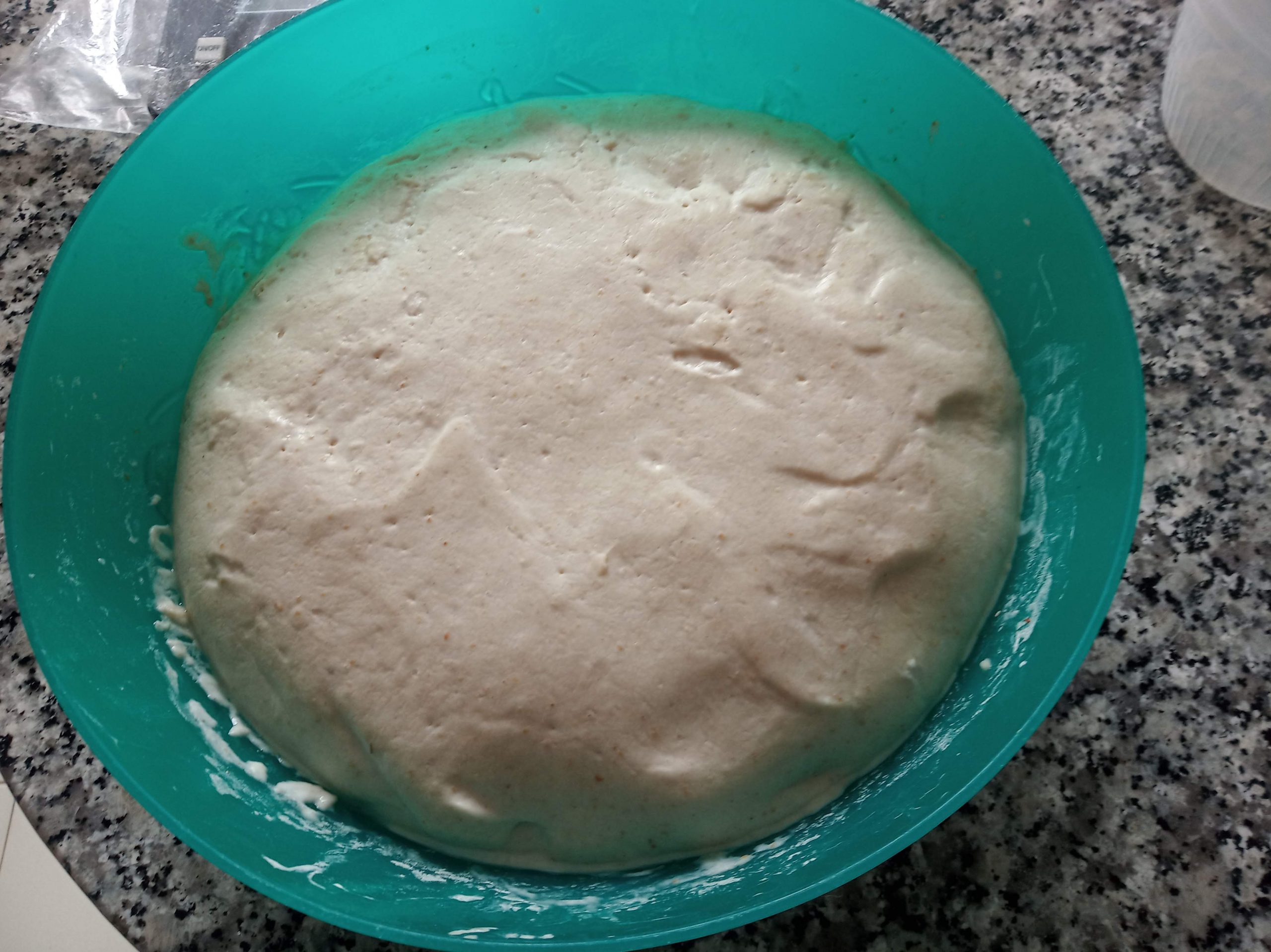 No sabia si era mucho o poco, y saqué 2 porciones del congelador, a temperatura ambiente, cual fue mi sorpresa, cuando la vi subir de volumen. La guarde en el frigorífico, ya que todavía no la iba a hacer.