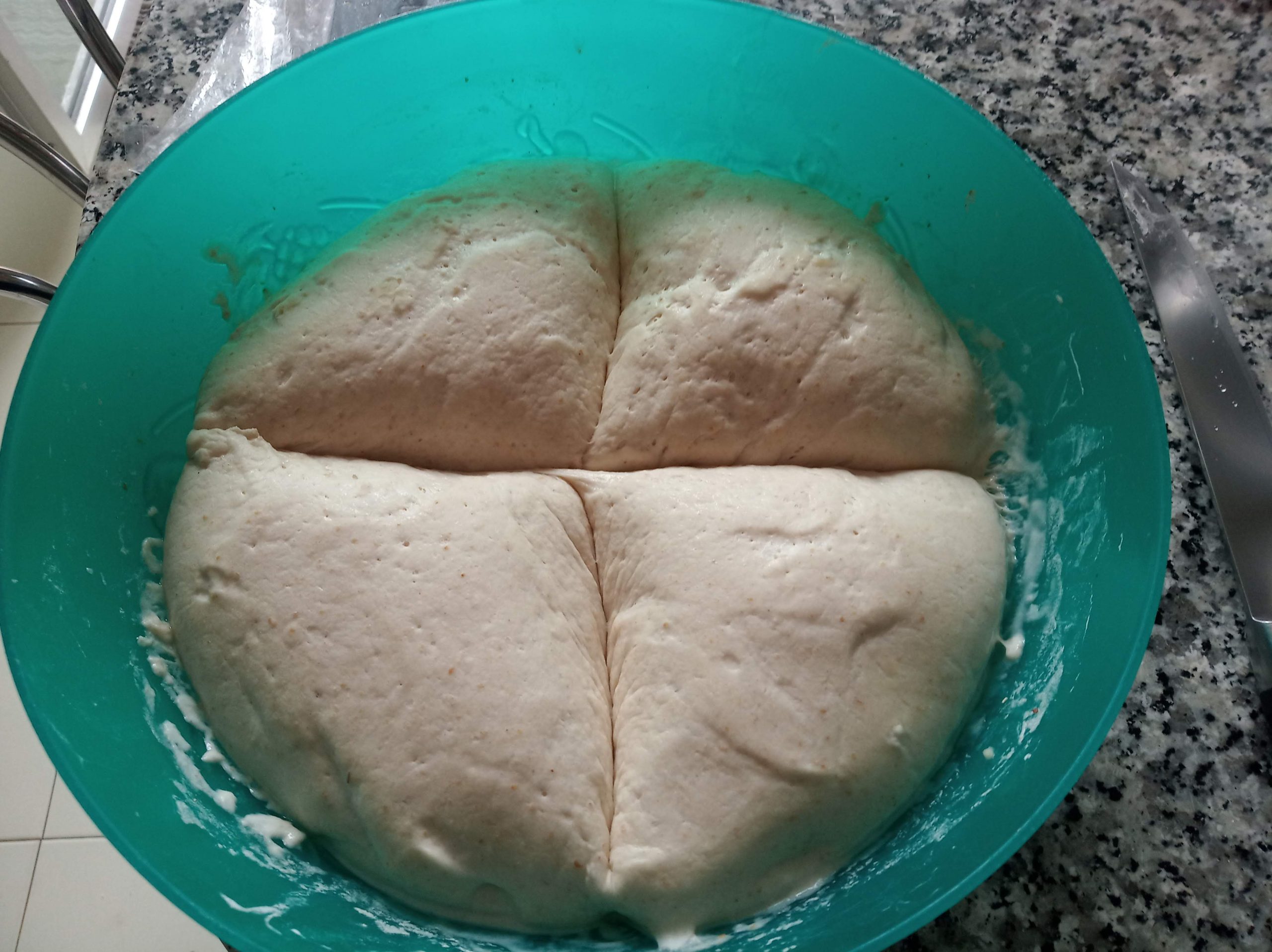 - Dejar reposar la masa dentro del horno a 30º tapado con film o un paño, durante 1 ó 2 horas, hasta que doble su volumen.