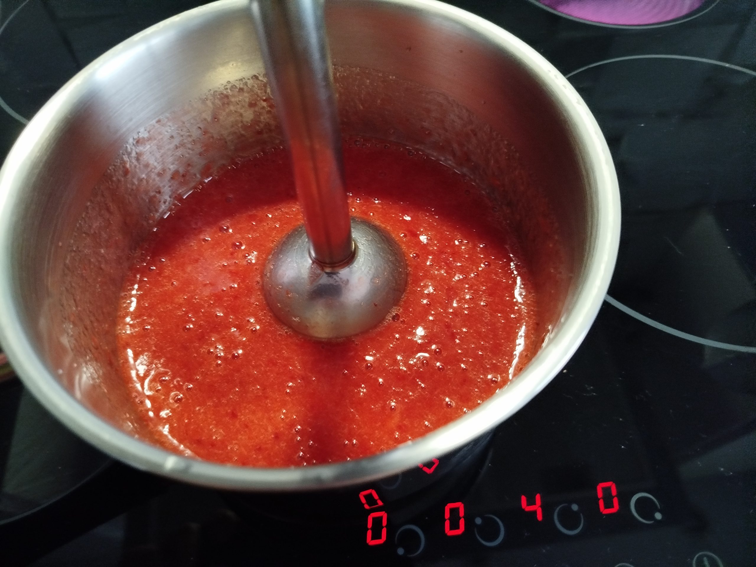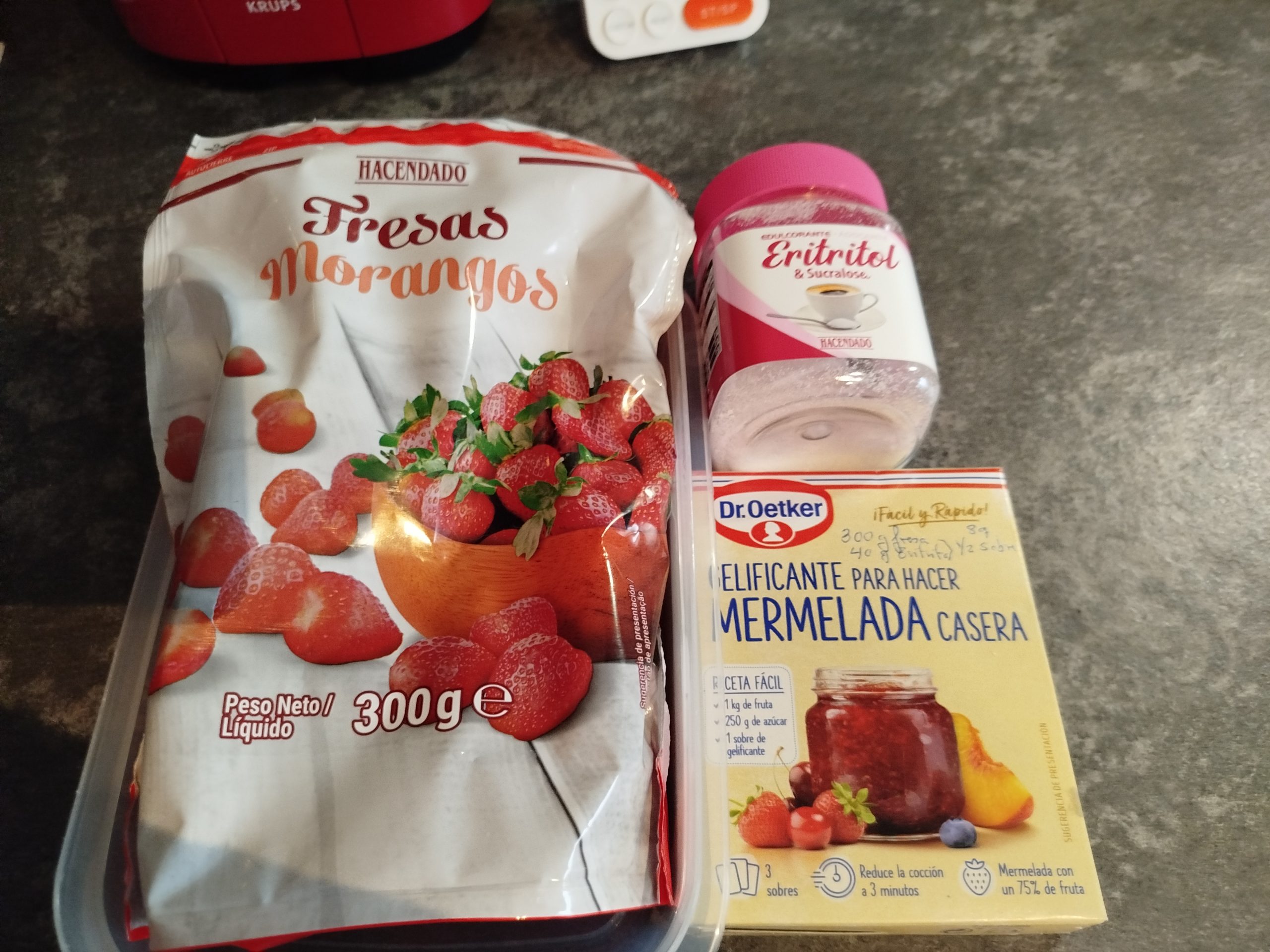 Si lo haces con fresas, yo suelo hacerlo con la bolsa de 300 g congelada, puedes descongelar en el frigorífico el día anterior, y luego todo igual. También hacerlo con la fruta que te guste fresca, que este un poco pasadita, o también congeladas, como Mix Tropical, etc.