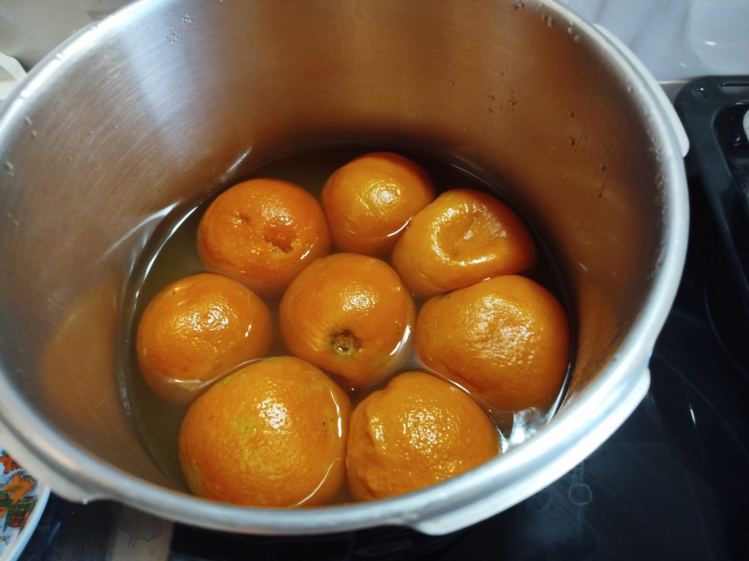 Esta vez no lo hice, pero creo que es mejor una vez lavadas las naranjas, cortar por la mitad y quitar todos los huesos.