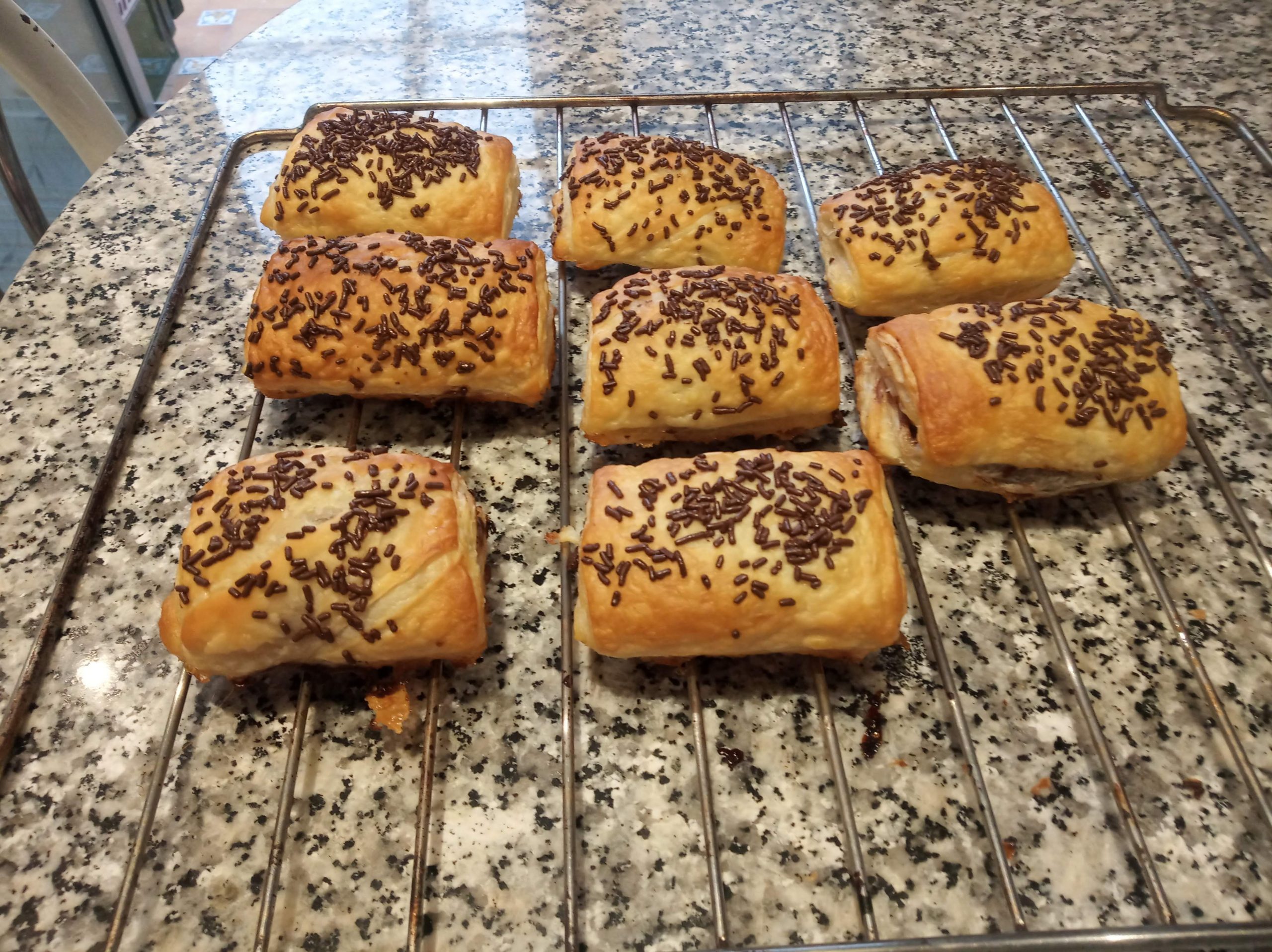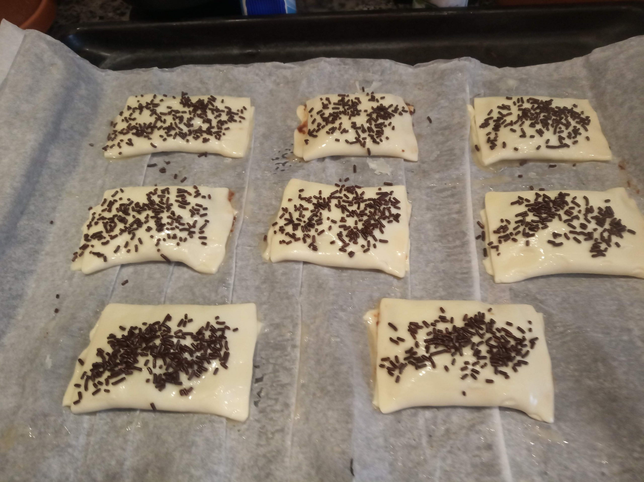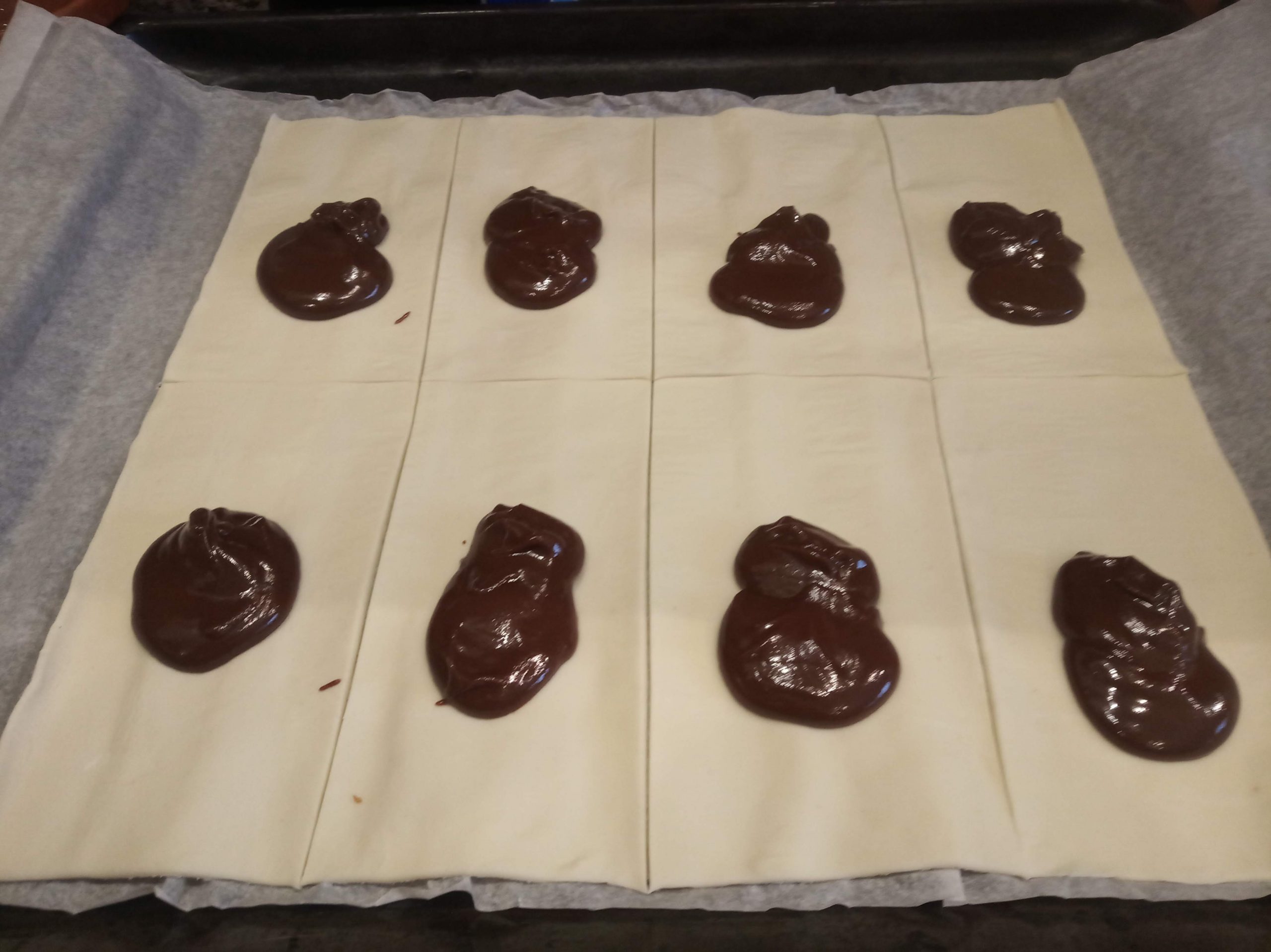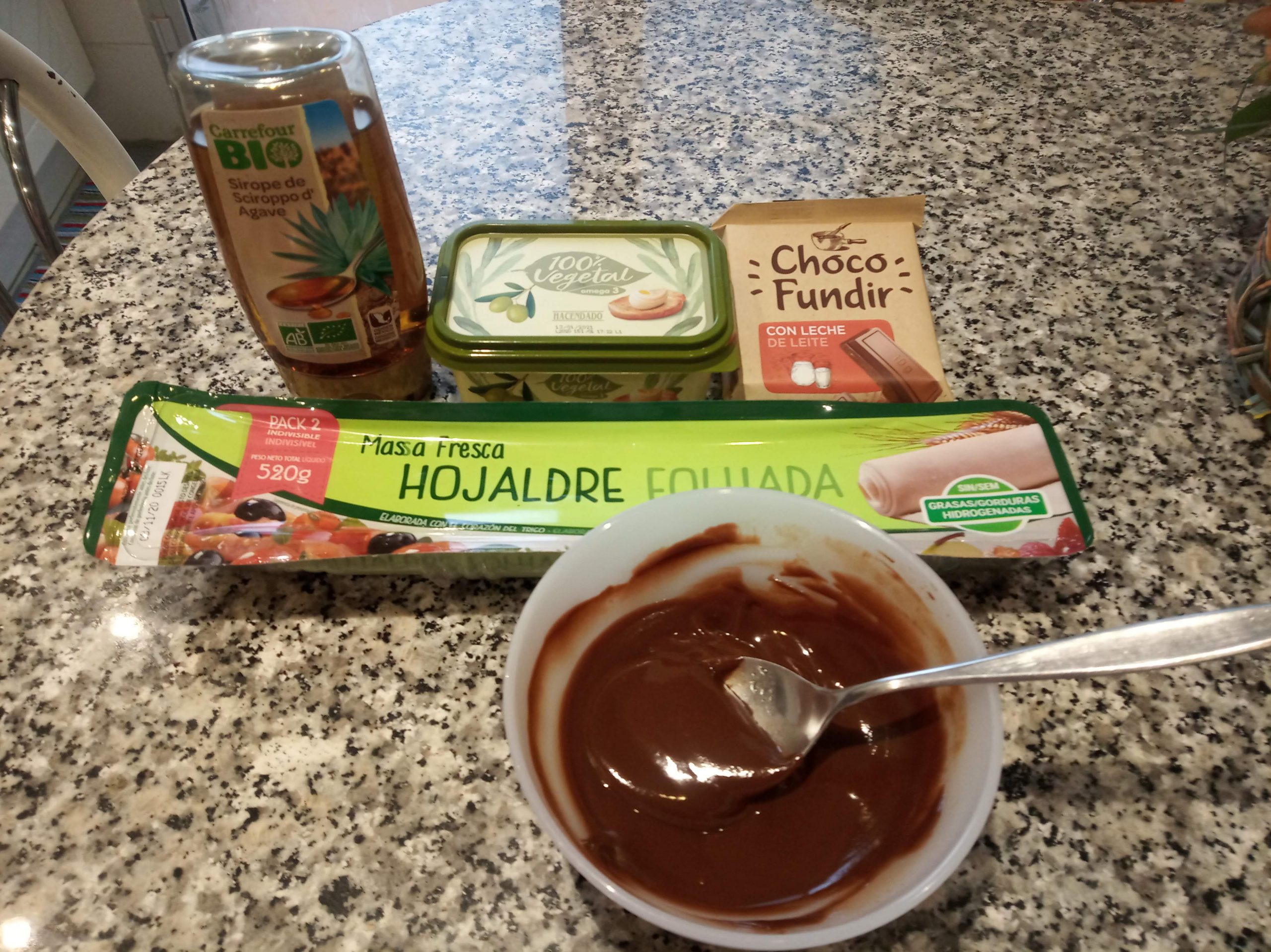 La crema de chocolate la tome de una receta de Nestlé Cocina, adaptada a mi gusto y el resto de mi receta de Napolitanas rellenas de chocolate de almendras o avellanas