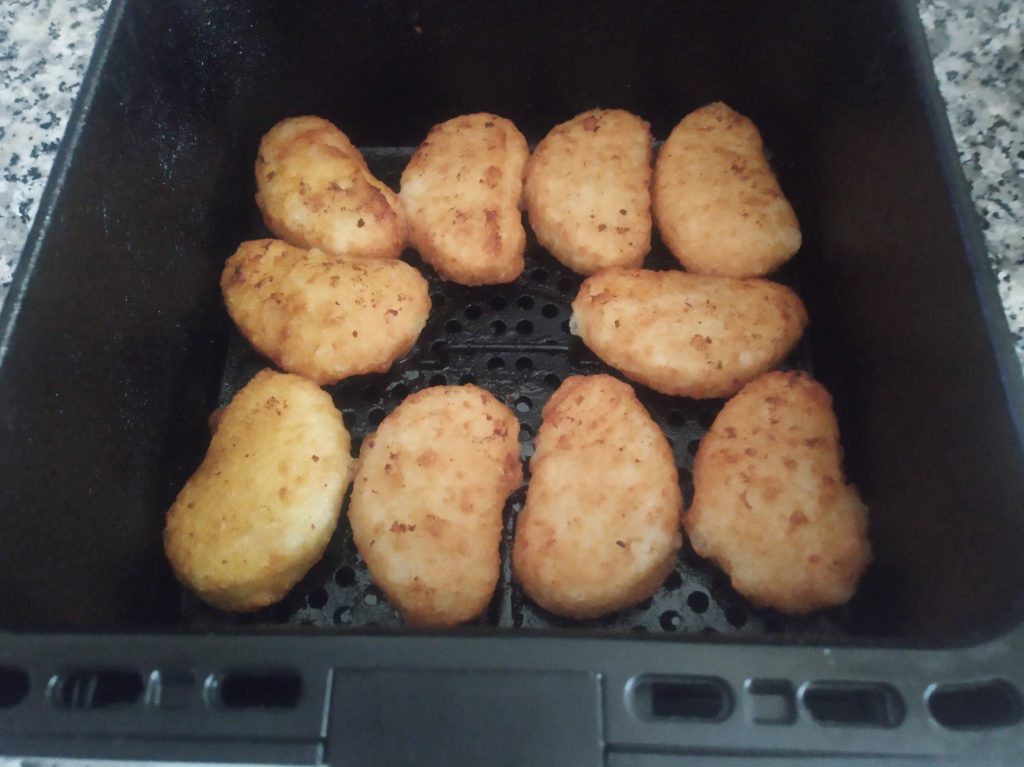 Colocar en el cestillo unos 10 Nuggets de pollo y hacer a 200ºC durante 8 minutos, dar la vuelta y hacer otros 4 minutos.