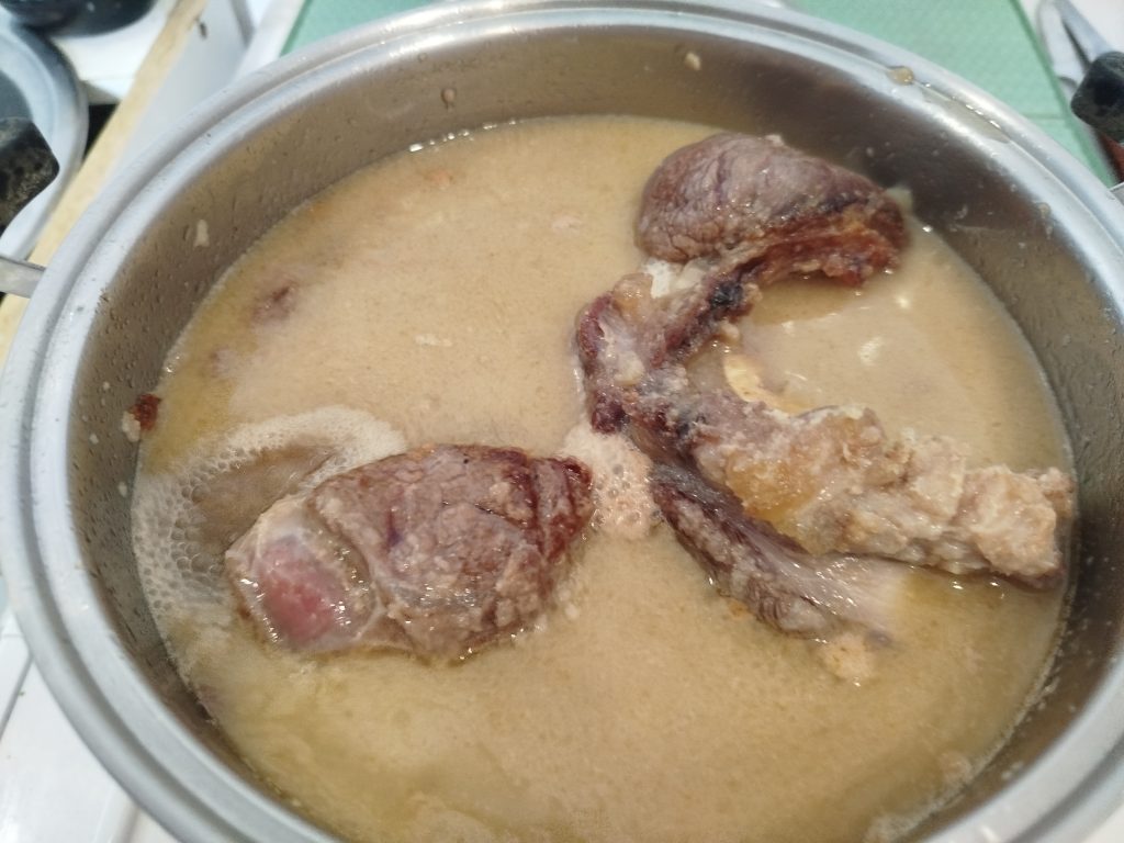 - 2 vasos de Caldo de carne o agua y pastilla