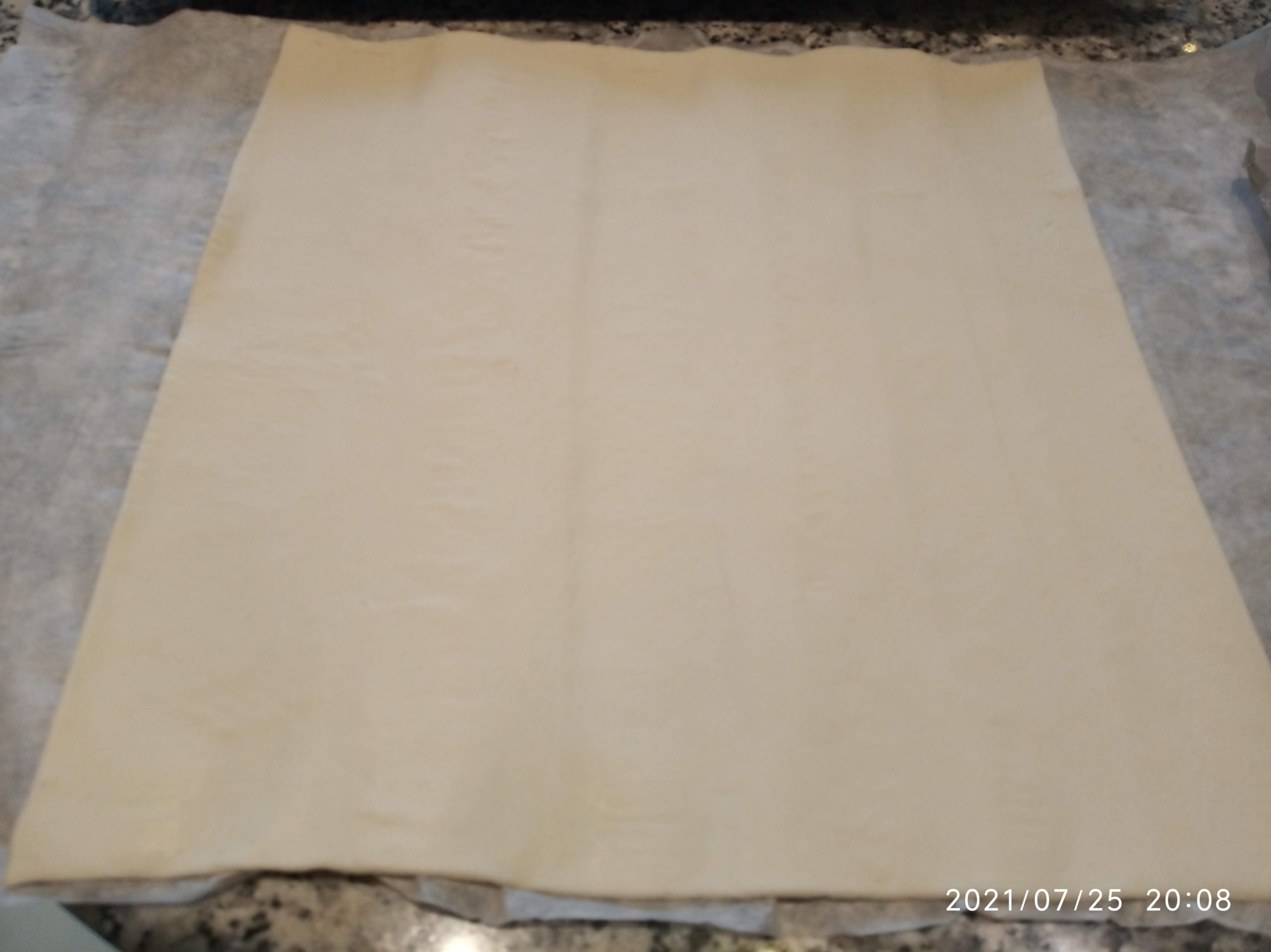Extender la masa de hojaldre en su propio papel.