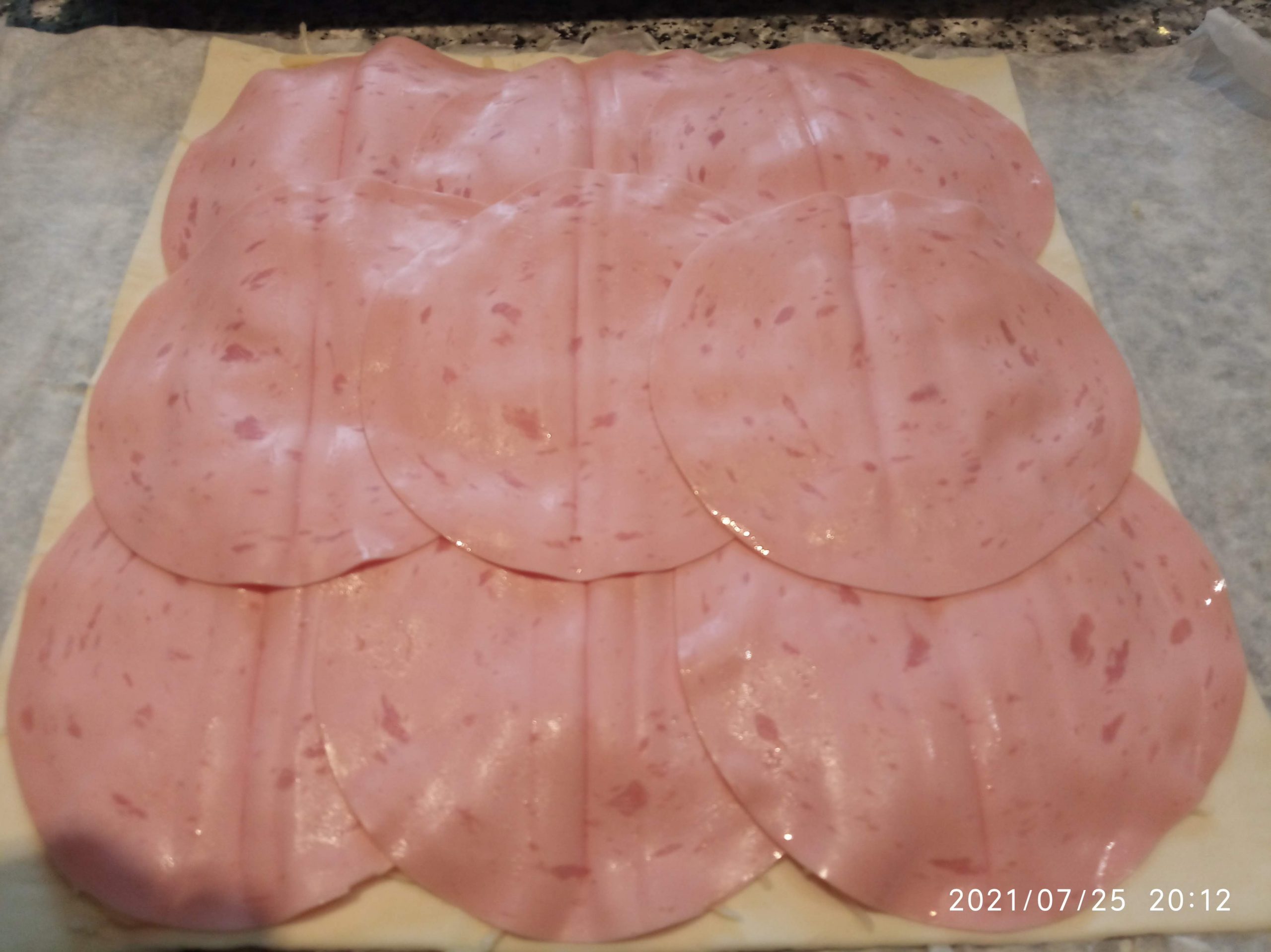 Distribuir las lonchas de mortadela.
