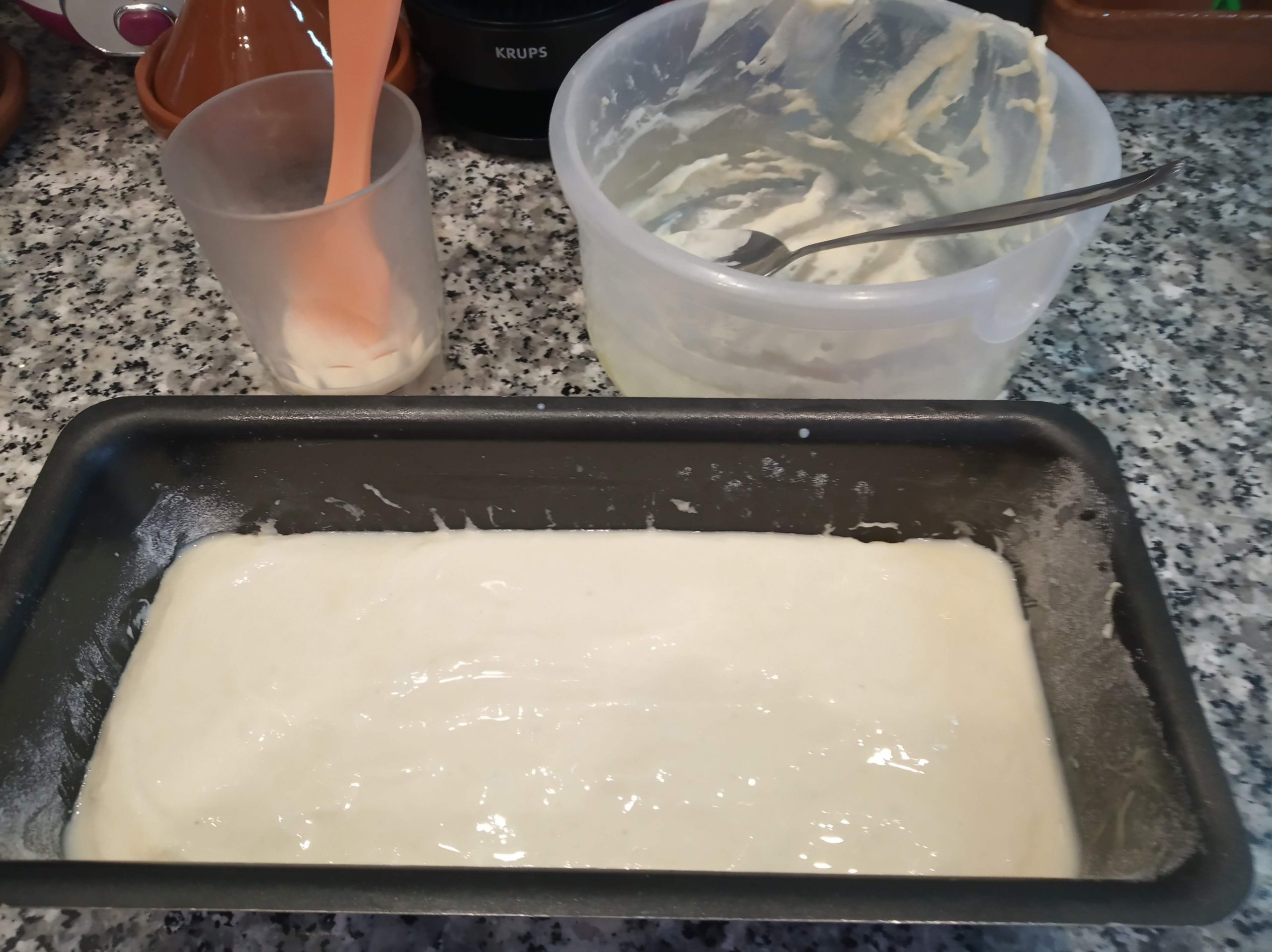 Mezclar todo muy bien, con una cuchara, o como yo con el brazo amasador. Queda pegajosa.