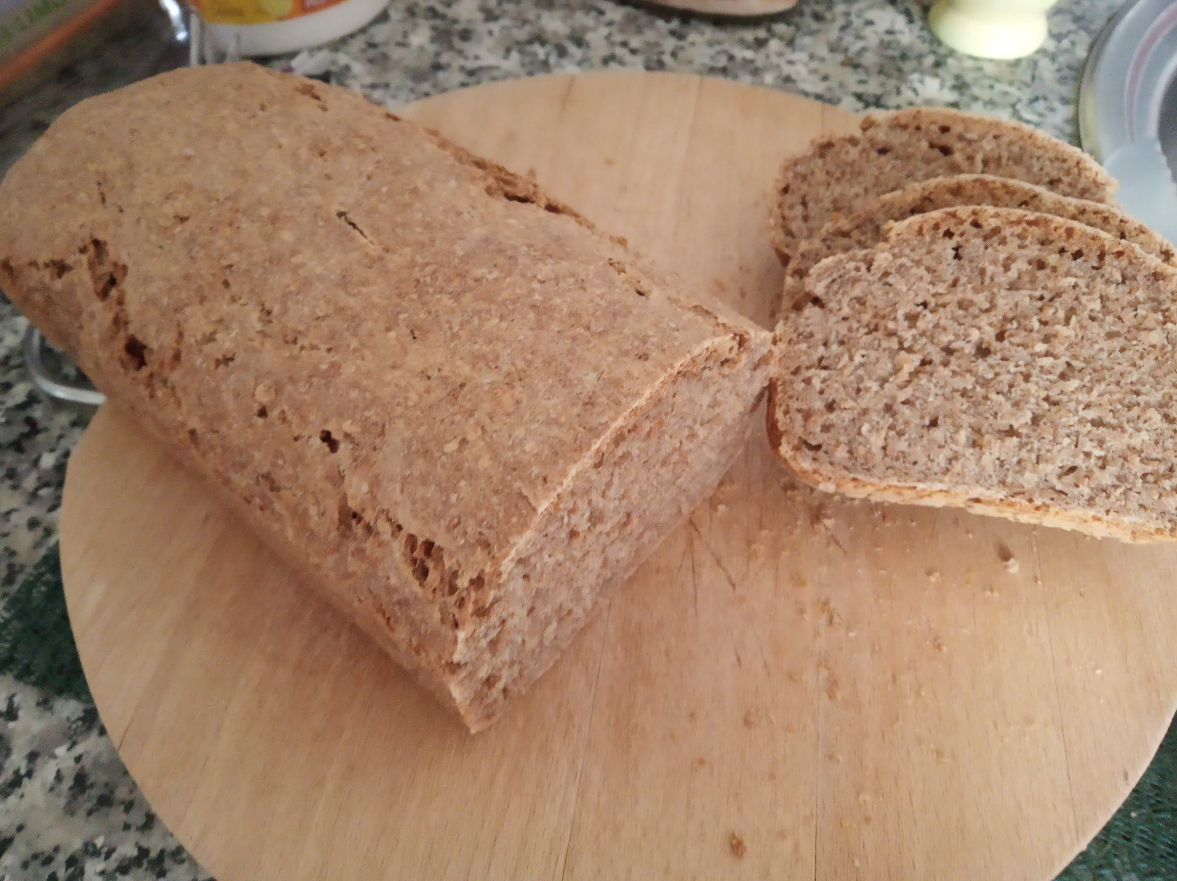 Sacar del horno, desmoldar con mucho cuidado que quema, y dejar reposar la barra de pan en una rejilla, hasta que se enfríe.